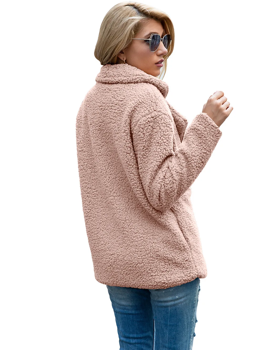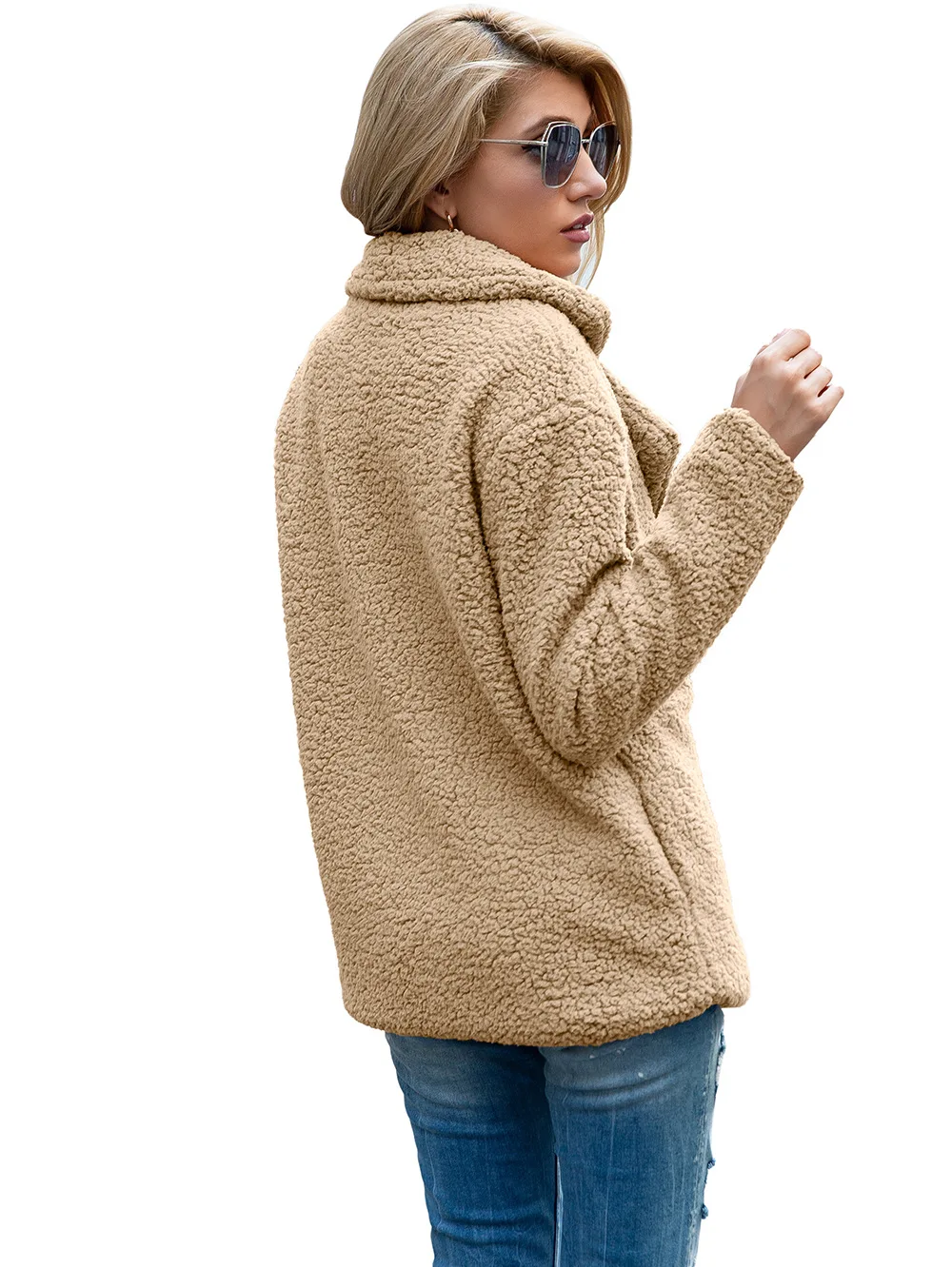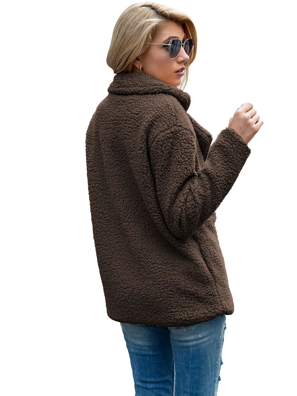 Осенне-зимний свободный флисовый свитер с воротником на пуговицах, ...