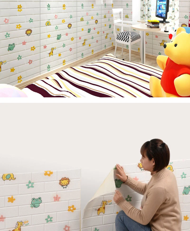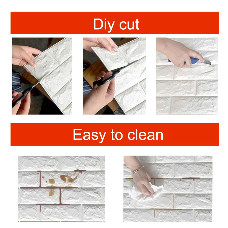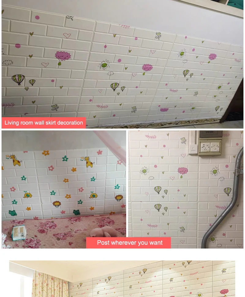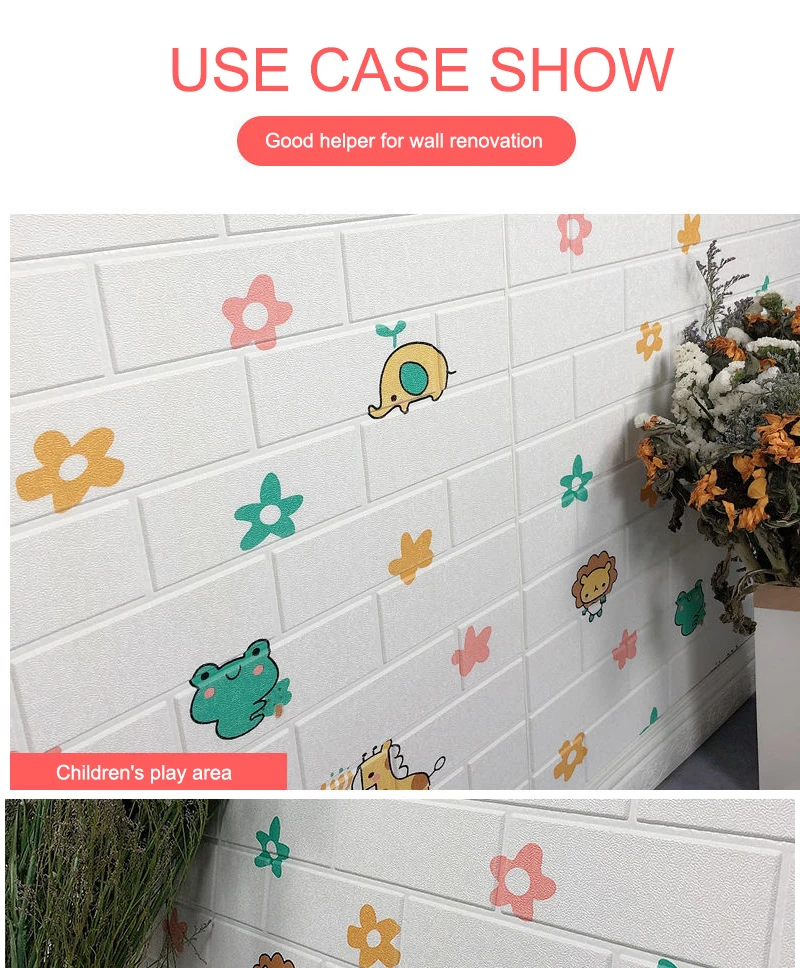 Особенность:1: трехмерная декоративная мягкая пена, защита от столкновений для детей, безопасность для вашей семьи.2: Безопасность и защита окружающей среды, Нетоксичная без запаха, подходит для семейного безопасного домашнего пространства.3: Реалистичный, эффект натурального кирпича, простой и современный стиль.4: Бесплатный «сделай сам», легкий самоклеящийся дизайн, установка, случайный коллаж, произвольный вырез.5: лучший эффект шумоподавления по сравнению с обоями.Способы и инструменты установкиПодготовка: Наклейте чистую поверхность с приклеиванием, например: деревянную поверхность, стеклянную поверхность, не пылевую стену, нанесите шпаклевку на дно стены и так далее.Наклеить: заднюю крышку оторванной бумаги наклеить на вспомогательные инструменты: ножницы, универсальный ножВнимание: пожалуйста, покупайте одновременно достаточное количество штук, чтобы избежать разницы в цвете.