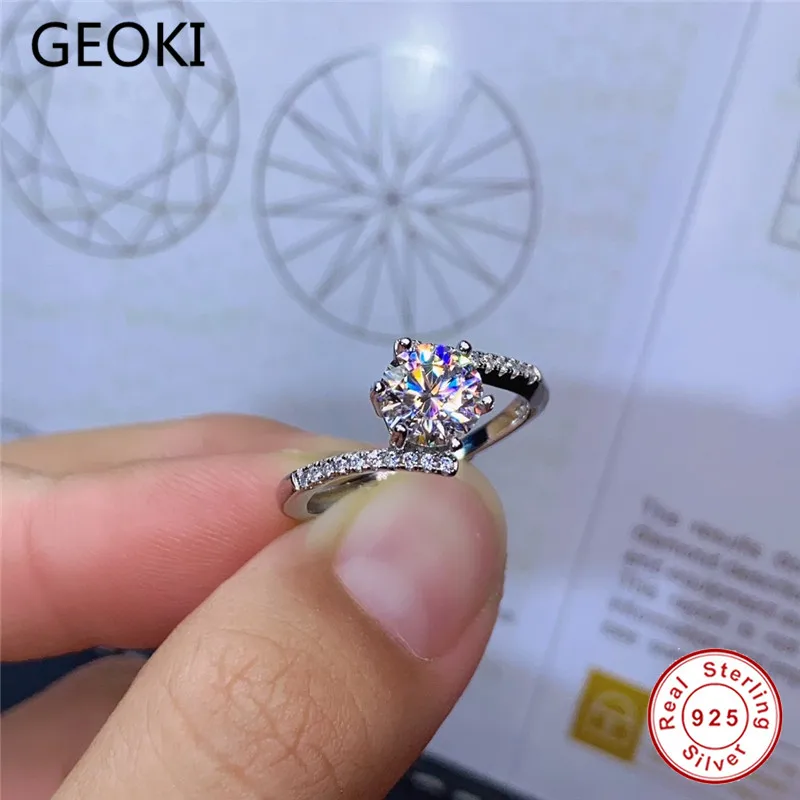 Geoki 925 пробы серебро прошел алмаз Тесты 1 Ct идеальный крой D Цв...