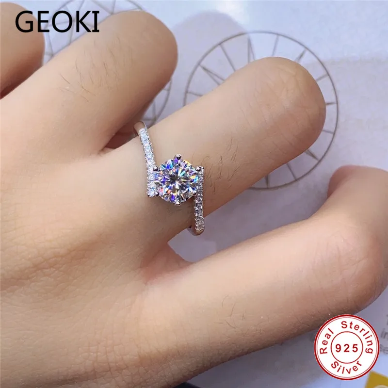 Geoki 925 стерлингового серебра прошел Diamond тесты 1-2 Ct идеальн...