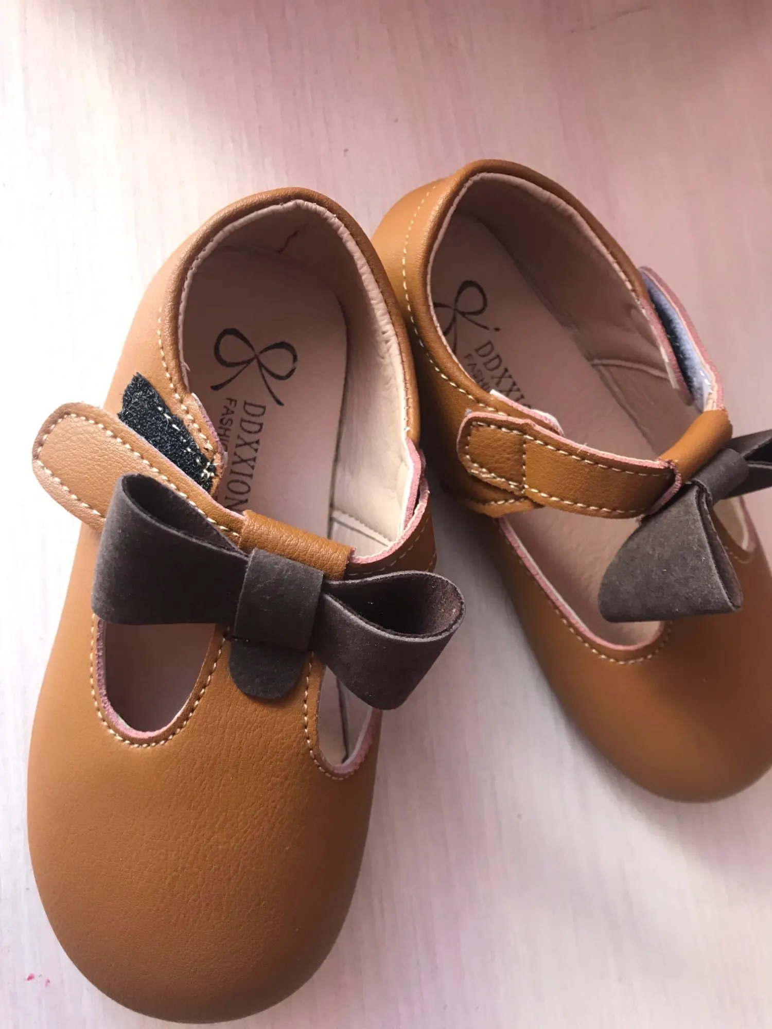 Кожаные туфли принцессы для девочек, Т-образный ремешок с бантом, Детские модельные туфли на плоской подошве с вырезами, мягкие, весна-осень 2021 г., новинка