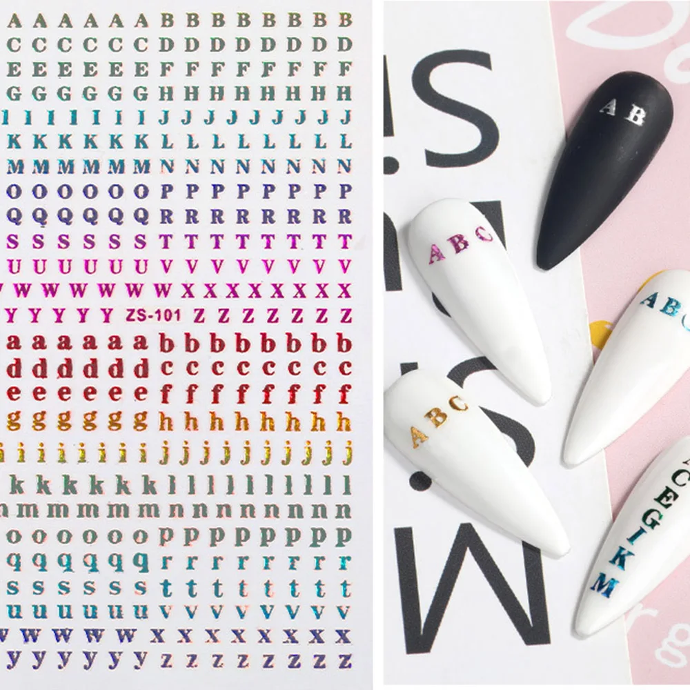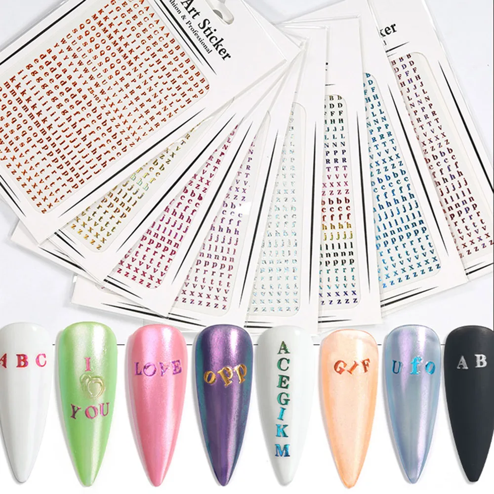 Наклейки для Фольга для ногтей, 26 алфавитов, наклейки для самостоятельного маникюра, наклейки для ногтей, художественные украшения