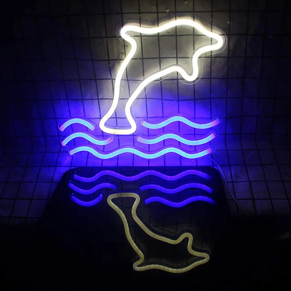 Светодиодный неоновый вывеска CAN Goodbibes Dream Dolphin Planet с двойным сердцем и питанием от USB, вечерние настенный светильник, Рождественский неоновый светильник s для бара, игровой комнаты, спальни, вечерние украшения стен