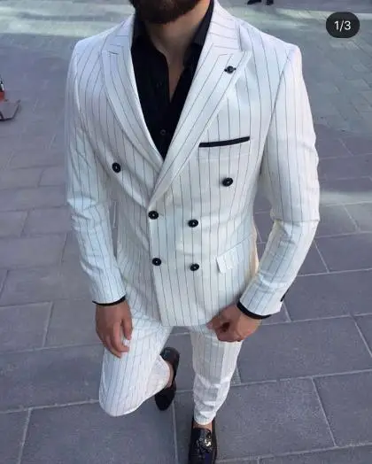 Костюм мужской двубортный в белую полоску, костюм для жениха, свадебный костюм из 2 предметов, формальный Блейзер, деловой смокинг, пиджак и брюки, 2021
