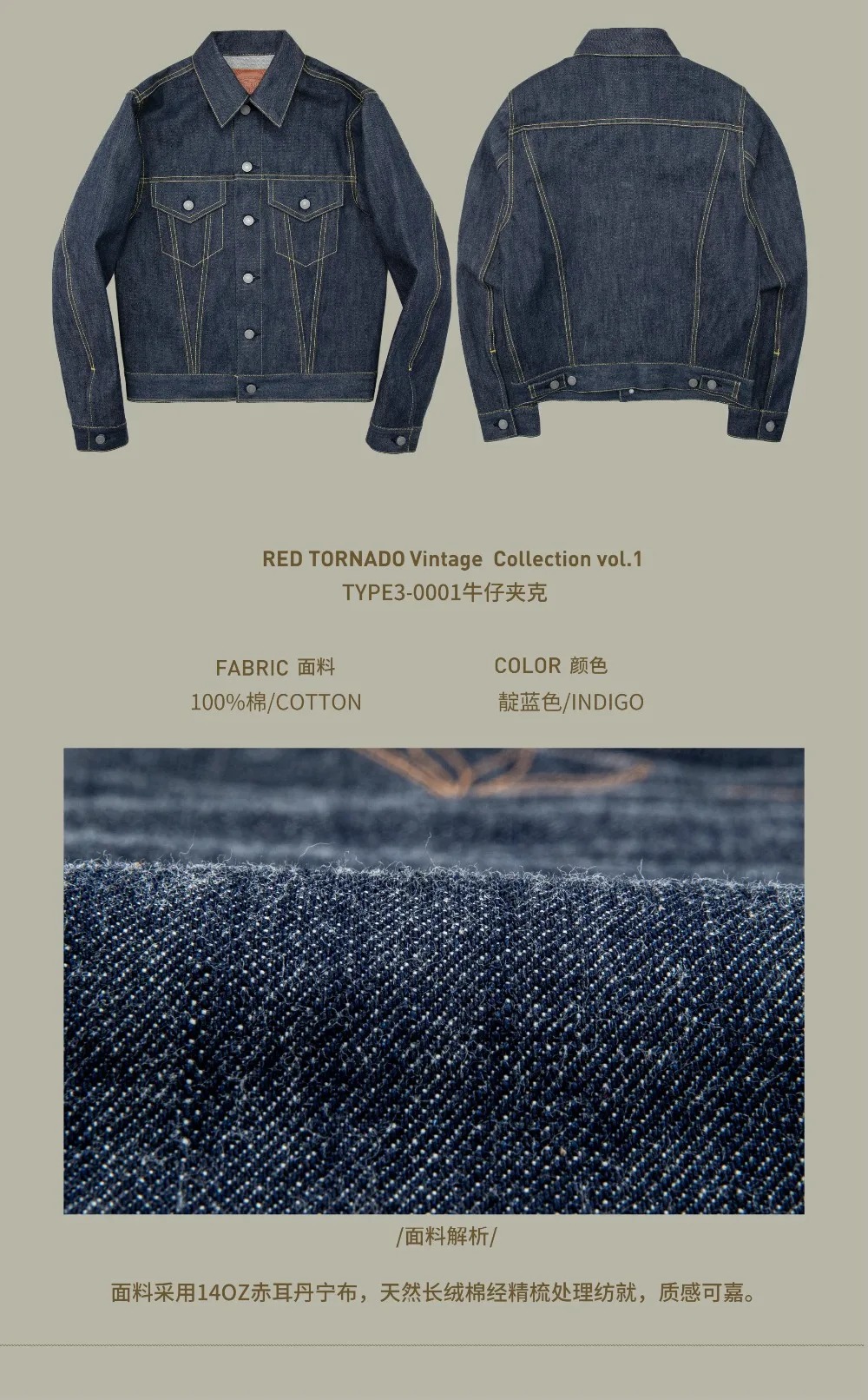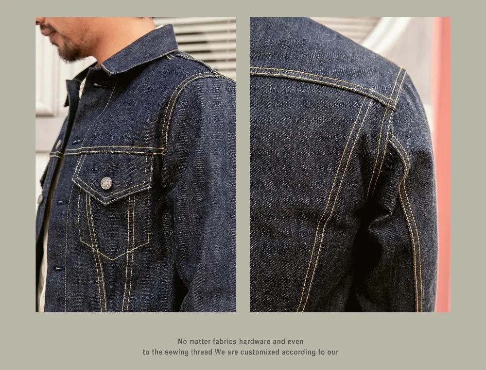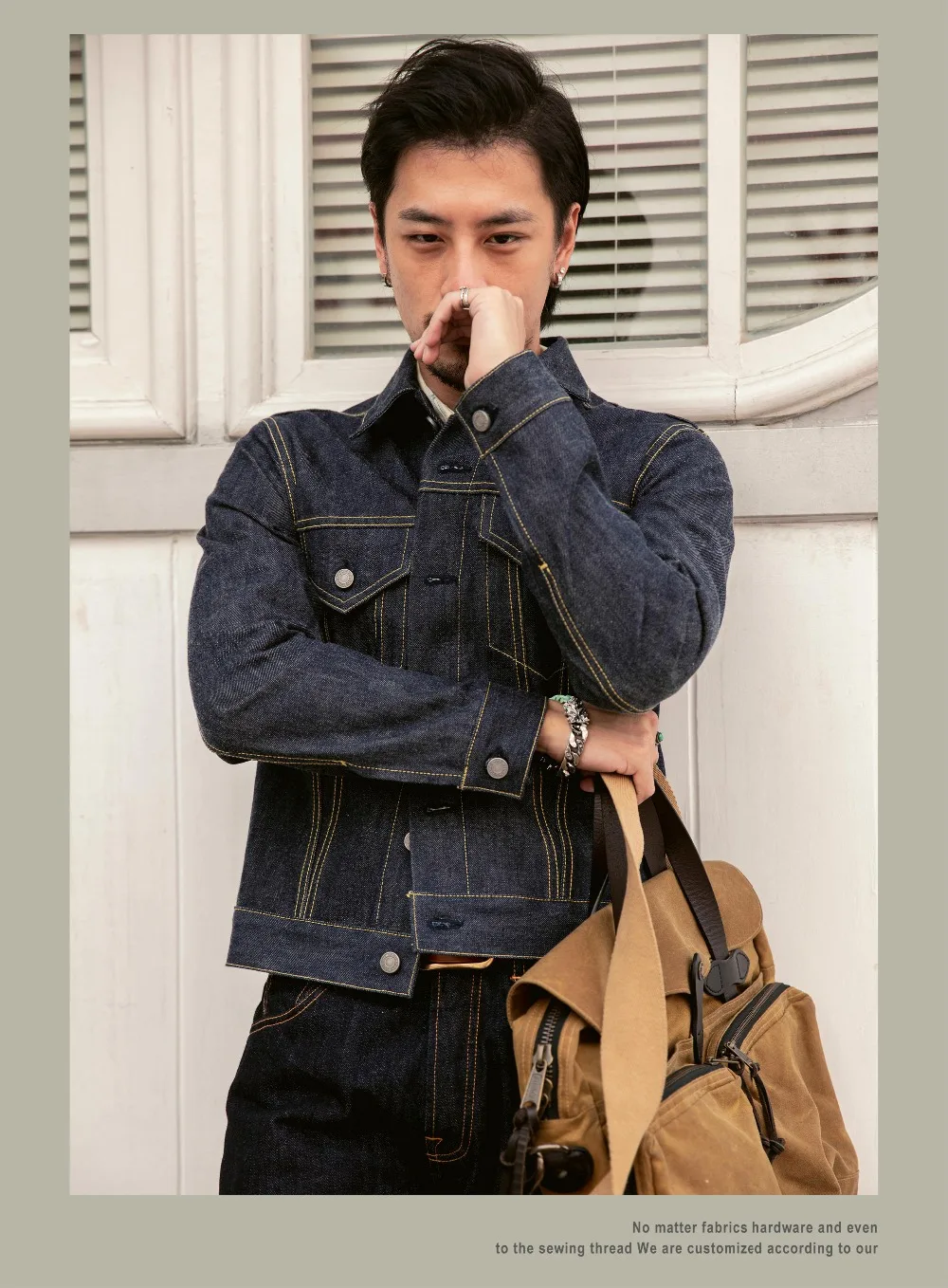 Куртка хлопковая Джинсовая, неотмытая, повседневная, большие размеры, 14 унций, TYPE3-0001