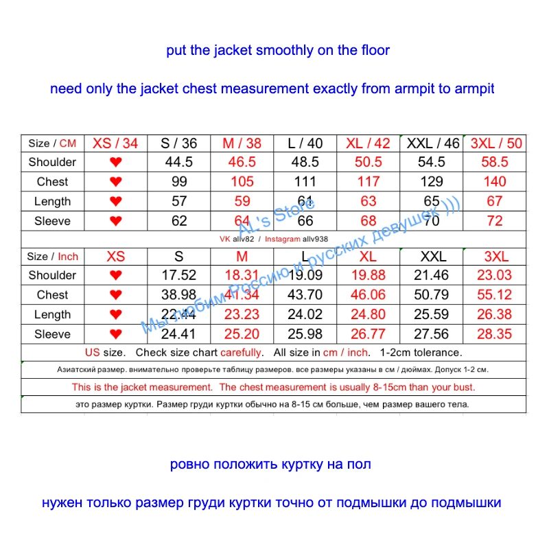 Пожалуйста, измерьте вашу куртку, как показано ниже: