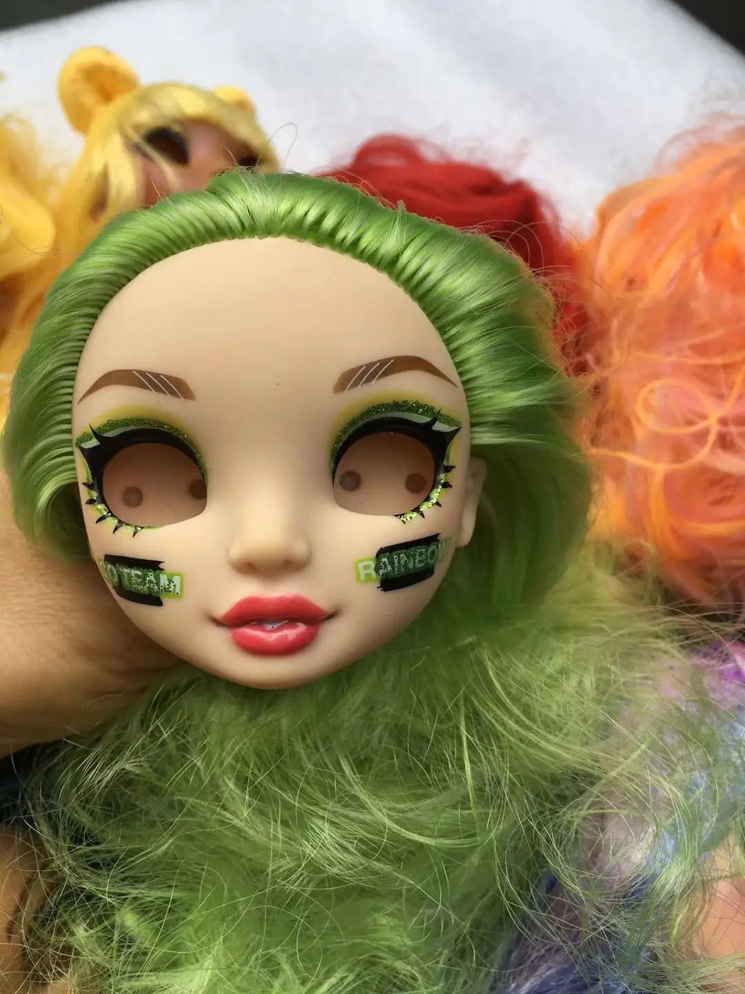 Большие очки, глаза с настоящими ресницами, красные, оранжевые, желтые волосы, Кукольная голова, оригинальные куклы, аксессуары «сделай сам», детали для украшения куклы для девочек