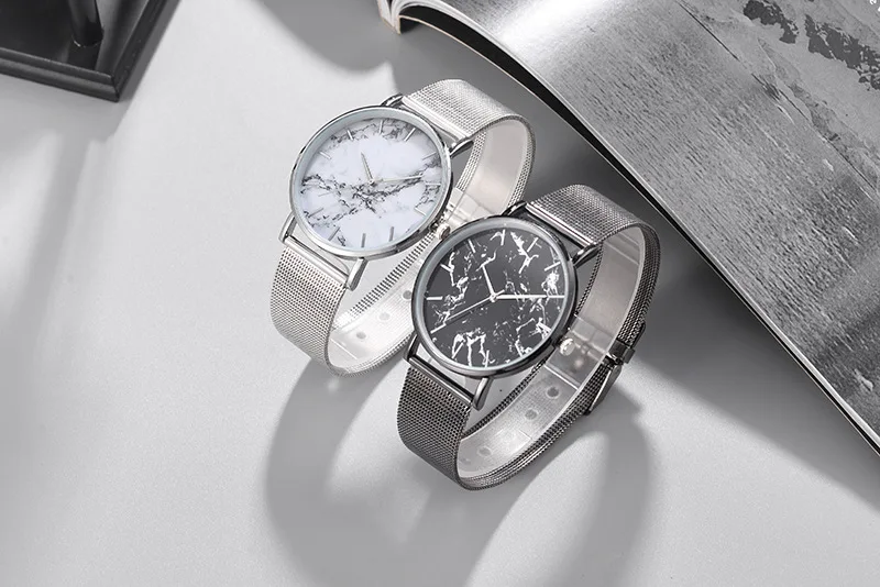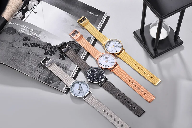 Часы наручные женские кварцевые под мрамор, модные повседневные креативные, с сетчатым браслетом под розовое золото, Лидер продаж