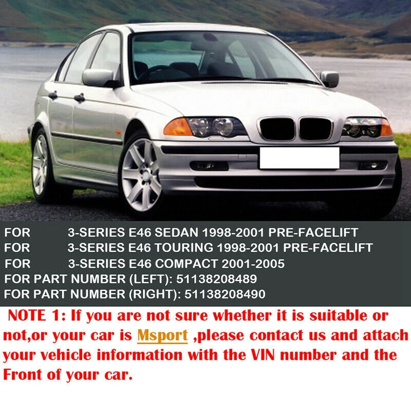 Хромированный цветной дизайн улучшает внешний стиль вашего автомобиляИзготовлен из АБС-пластика, светильник имеет вес и долговечностьОбновите свой автомобиль с роскошным внешним видомПрямая замена OEMПростая установка. Никаких изменений не требуетсяНомер детали: 51138208487, 51138208488Состояние на 100% абсолютно новыйФитинг: для 1998-2001 BMW E46 4 двери седан (320i 323i 325i 328i 330i)Примечание: Не подходит для моделей 2002 +.Приведенная выше информация предназначена только для справки. Пожалуйста, проверьте размер, чтобы убедиться, что он подходит вашему автомобилю.LH = сторона водителя (в США)RH = пассажирская сторона (в США)Часто задаваемые вопросы:В. Требует ли эта решетка модификации?А. Нет. Для установки этой решетки не требуется никаких изменений.В. Эта Решетка поставляется с инструкцией по установке?А. Нет, он не поставляется с инструкцией по установке.Цвет: серебристыйМатериал: АБС-пластикПосылка:2 x грильТолько вышеуказанная посылка, другие товары не включены.Примечание: светильник и различные дисплеи могут привести к тому, что цвет товара на картинке немного отличается от реального. Допускается погрешность в измерениях +/- 1-3 см.