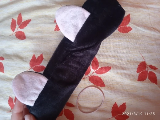 Повязка плотная, хорошо держится на голове. В оригинале ушки кажутся поменьше. Доставка достаточно быстрая. Трек отслеживался.