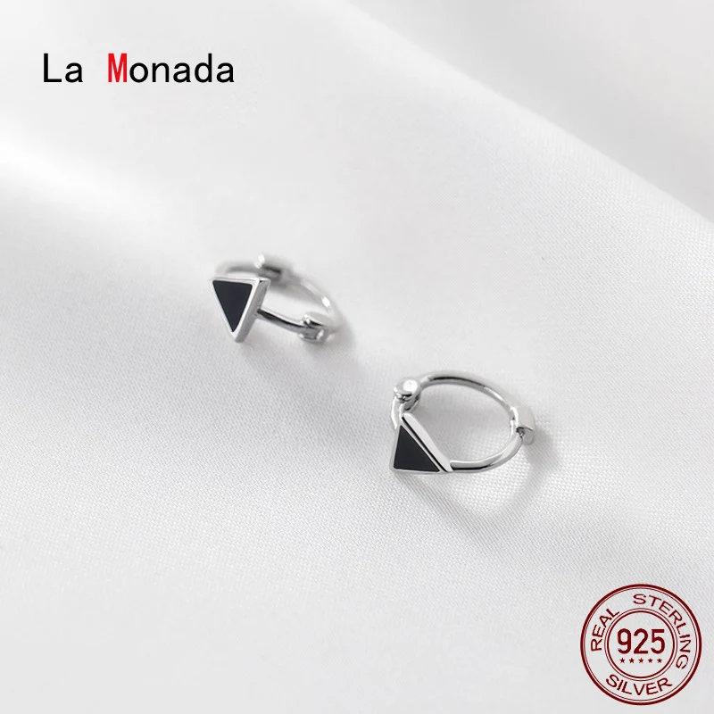 Ла Monada маленькие женские серьги-кольца серебряный 925 женщин черный треугольный Серебряный 925 ювелирные изделия серебряные серьги 925 для женщин
