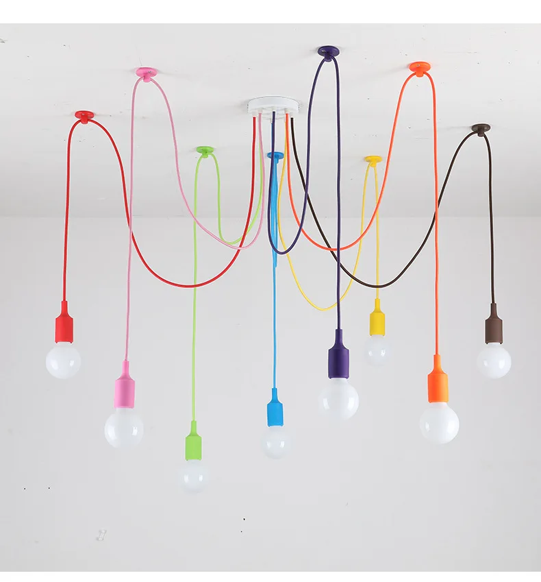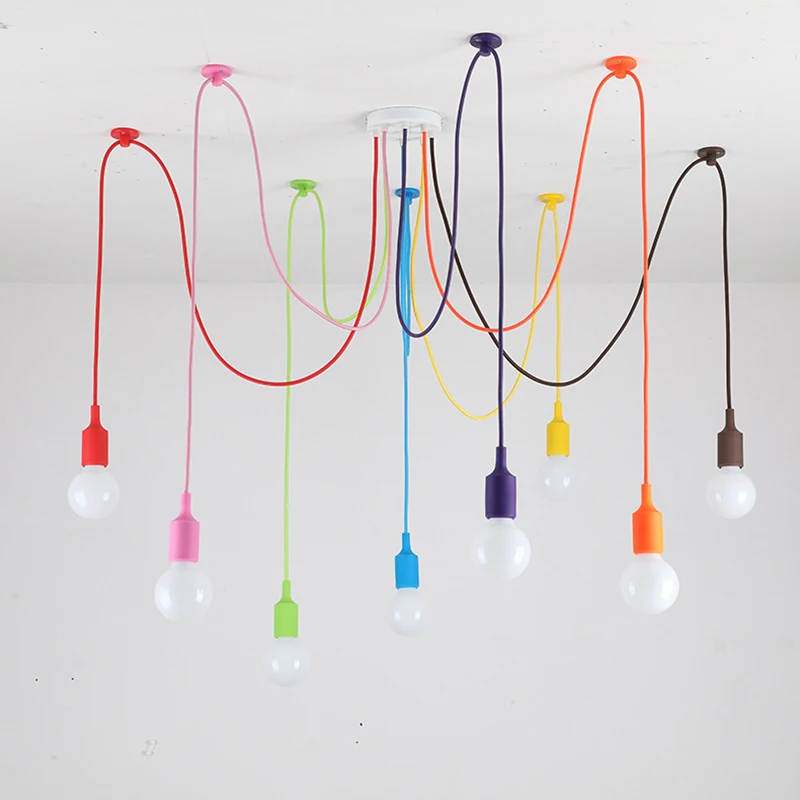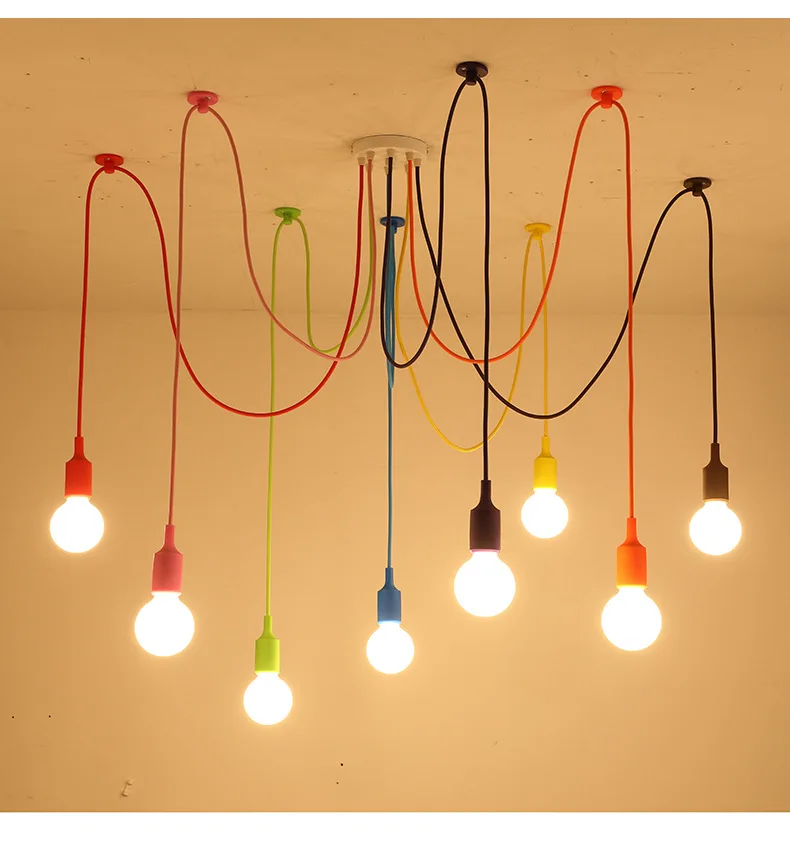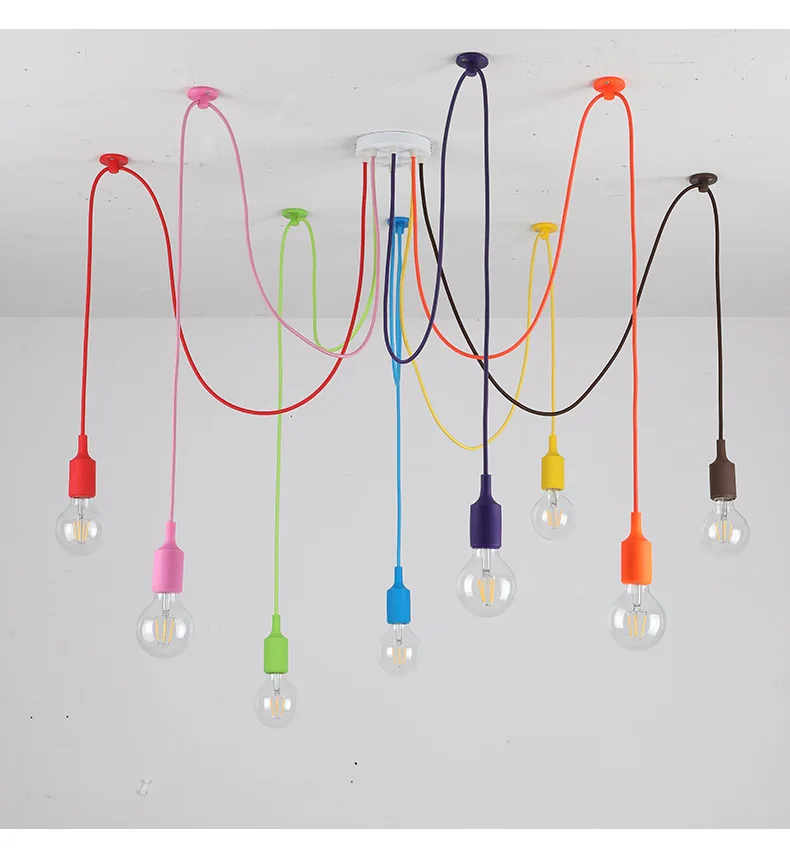 Разноцветная люстра в форме паука, силиконовый Светильник E27 для детской комнаты, светодиодная подвесная Подвесная лампа, украшение для гостиной