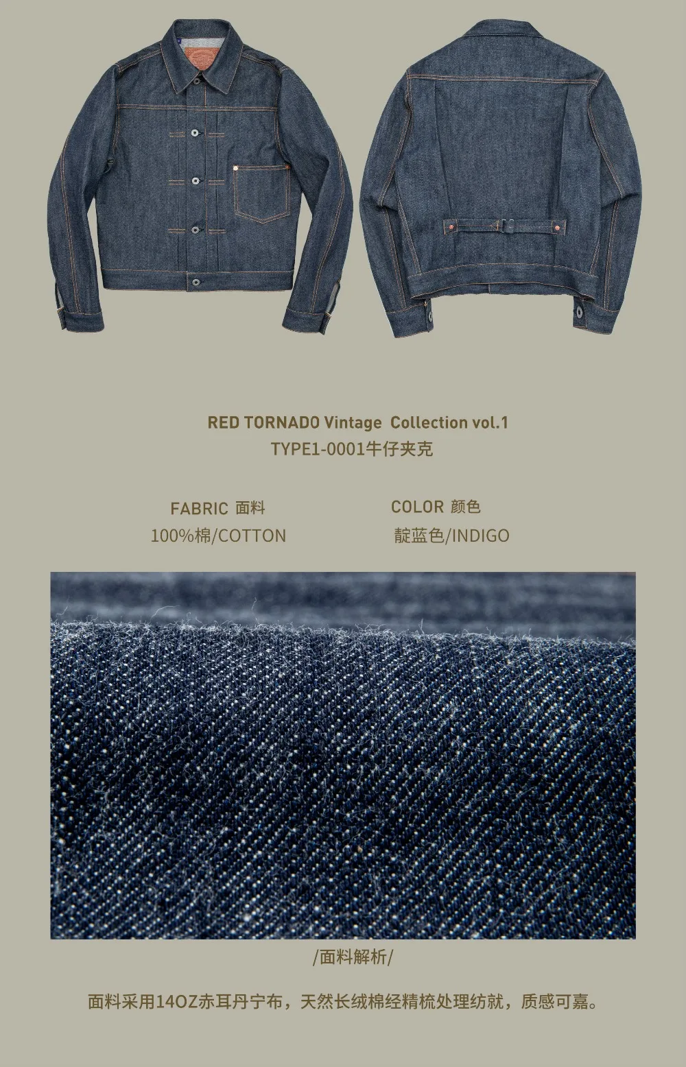 Красная джинсовая куртка Tornado Type 1 506XX, 14 унций, необработа...