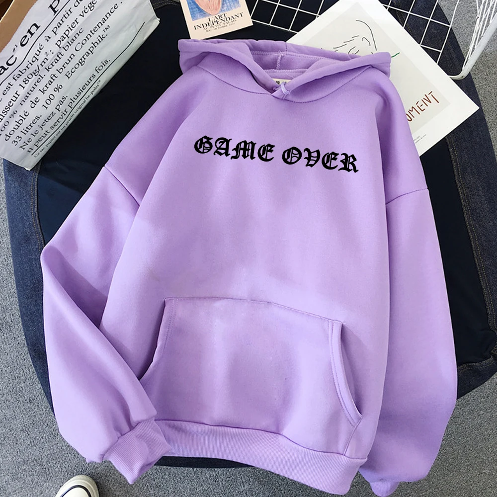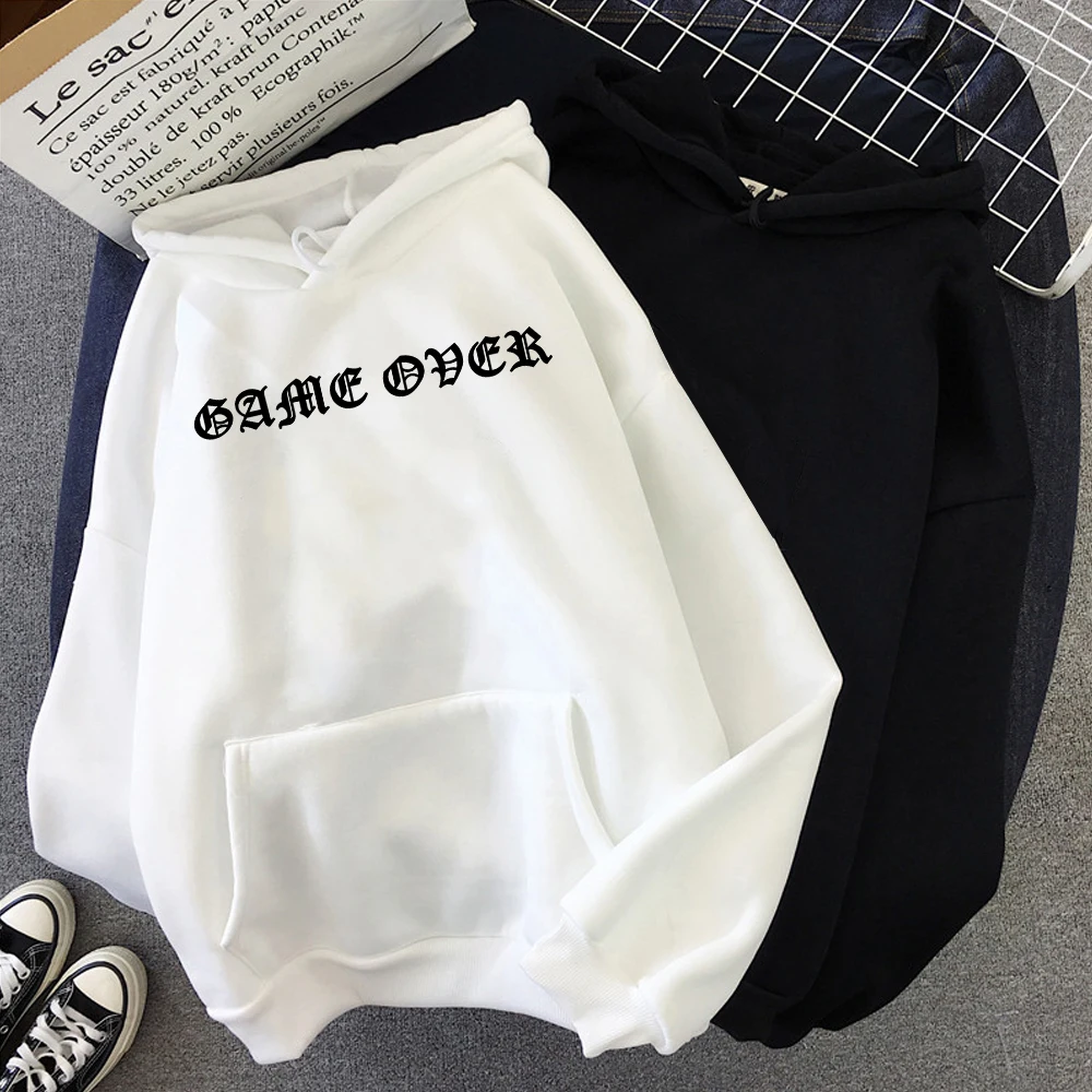 Модное женское пальто с капюшоном, осенне-зимний спортивный костюм, женское худи, пуловер с надписью Game Over, худи, свитшот для женщин