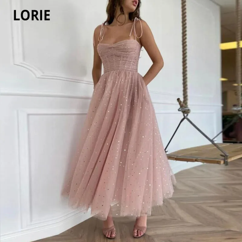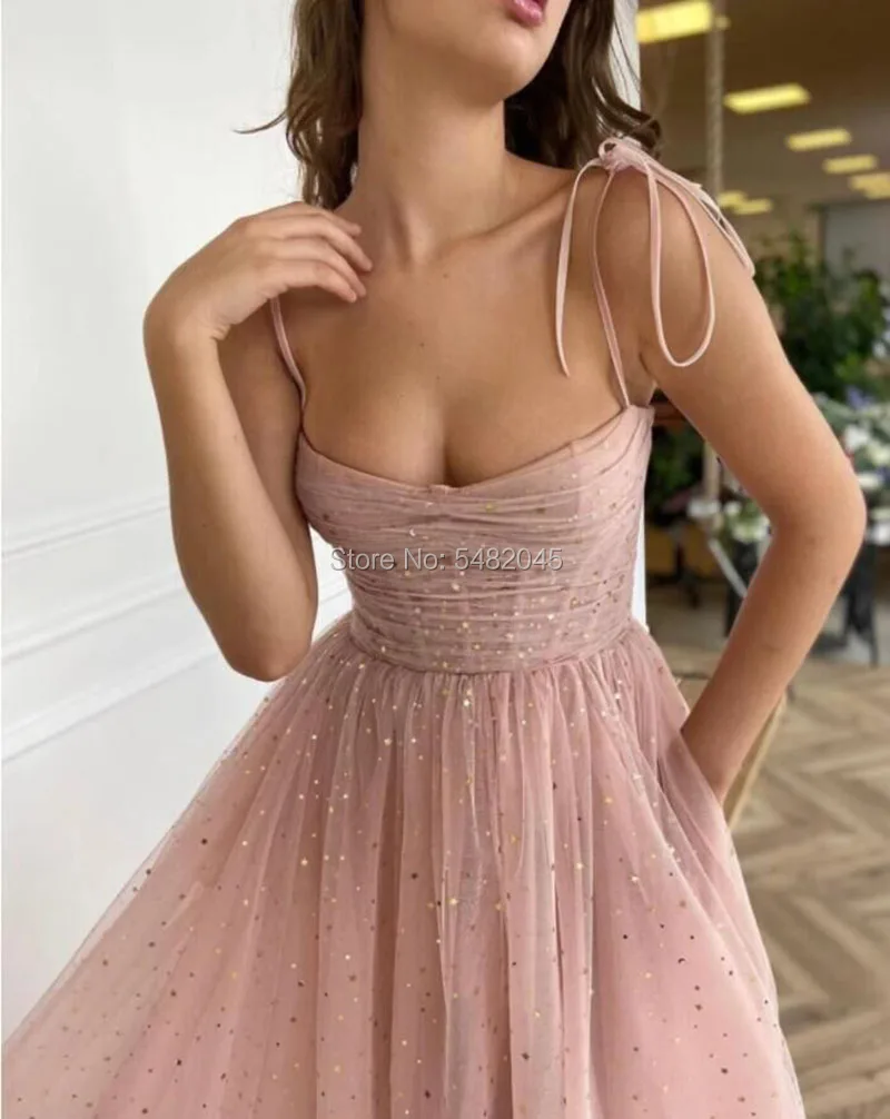 LORIE блестящее песочно-розовое платье для выпускного вечера, корсет с косточками и декоративными бретелями, Тюлевое платье длиной до колен с золотыми звездами, вечервечерние