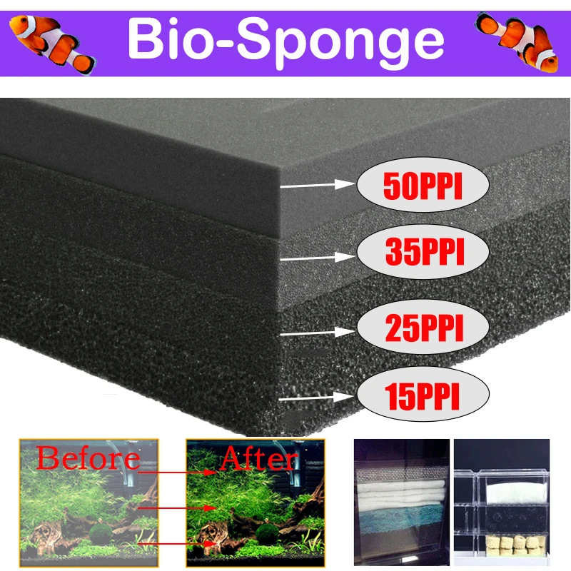 Аквариумные аксессуары, Биохимический хлопковый фильтр 15 25 35 50PPI, практичный аквариумный пруд, пенный Губчатый Фильтр, черный, несколько размеров