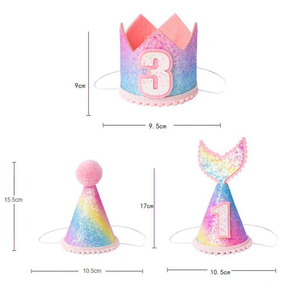 Цветная шапочка с радужной короной для детей 1-3 лет, шапочка с рыбьим хвостом и веревкой, счастливый ободок для дня рождения, вечерние бумажные шапки с украшением в виде русалки