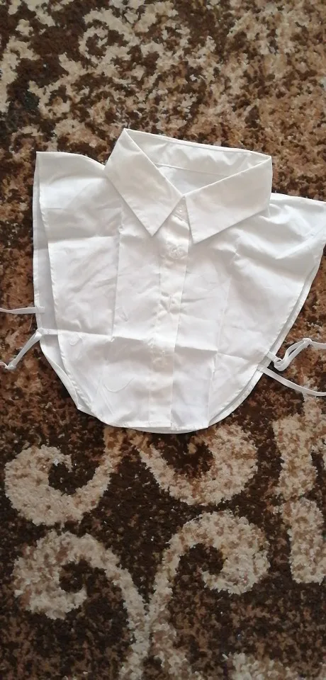 Воротничок из синтетической плотной ткани почему то желтоватого оттенка. смотрится не очень. отбелить к сожалению не получится.. обидно.