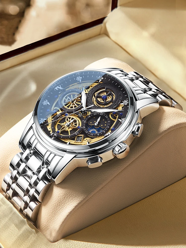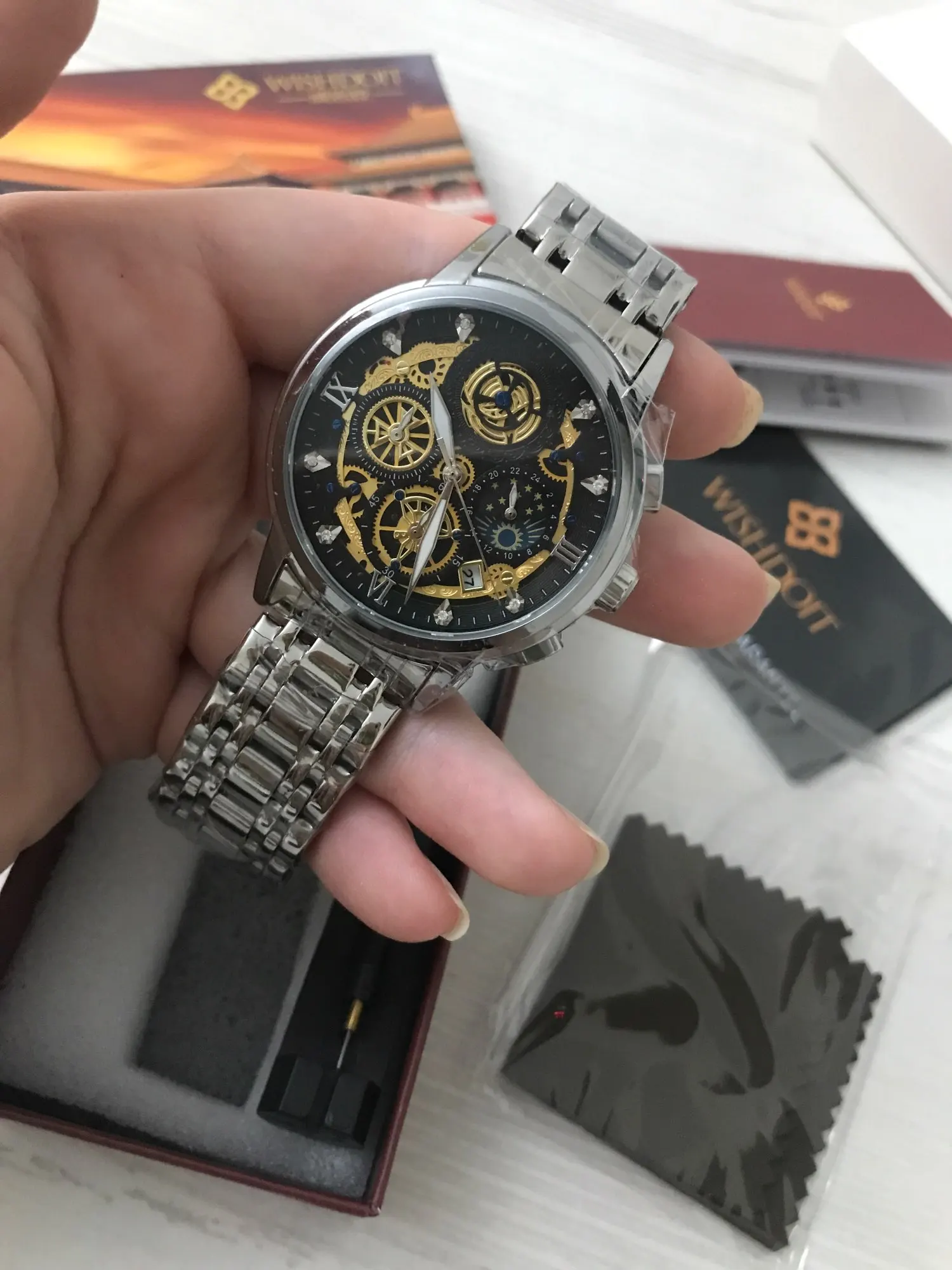 Часы WISHDOIT Мужские кварцевые аналоговые, оригинальные модные деловые водонепроницаемые наручные, с Луной и звездами, из нержавеющей стали