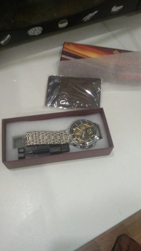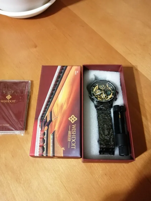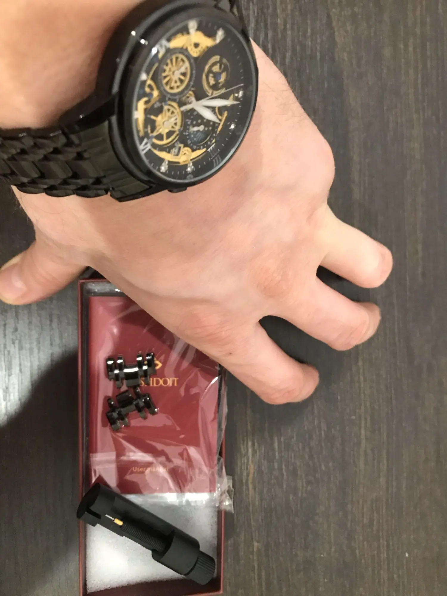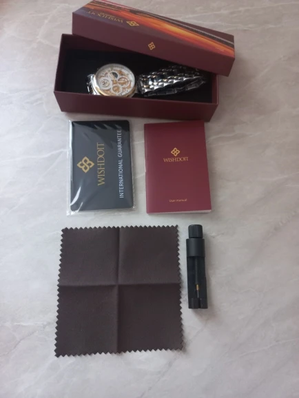 Пришли быстро. Упаковка превосходная. Внутри часы, протирка, инструкция англ, приспособа для уменьшения браслета. Часы нормальные. Из легкого металла. За свои деньги пойдёт. Покупал на повседневку. Посмотрим сколько проживут.