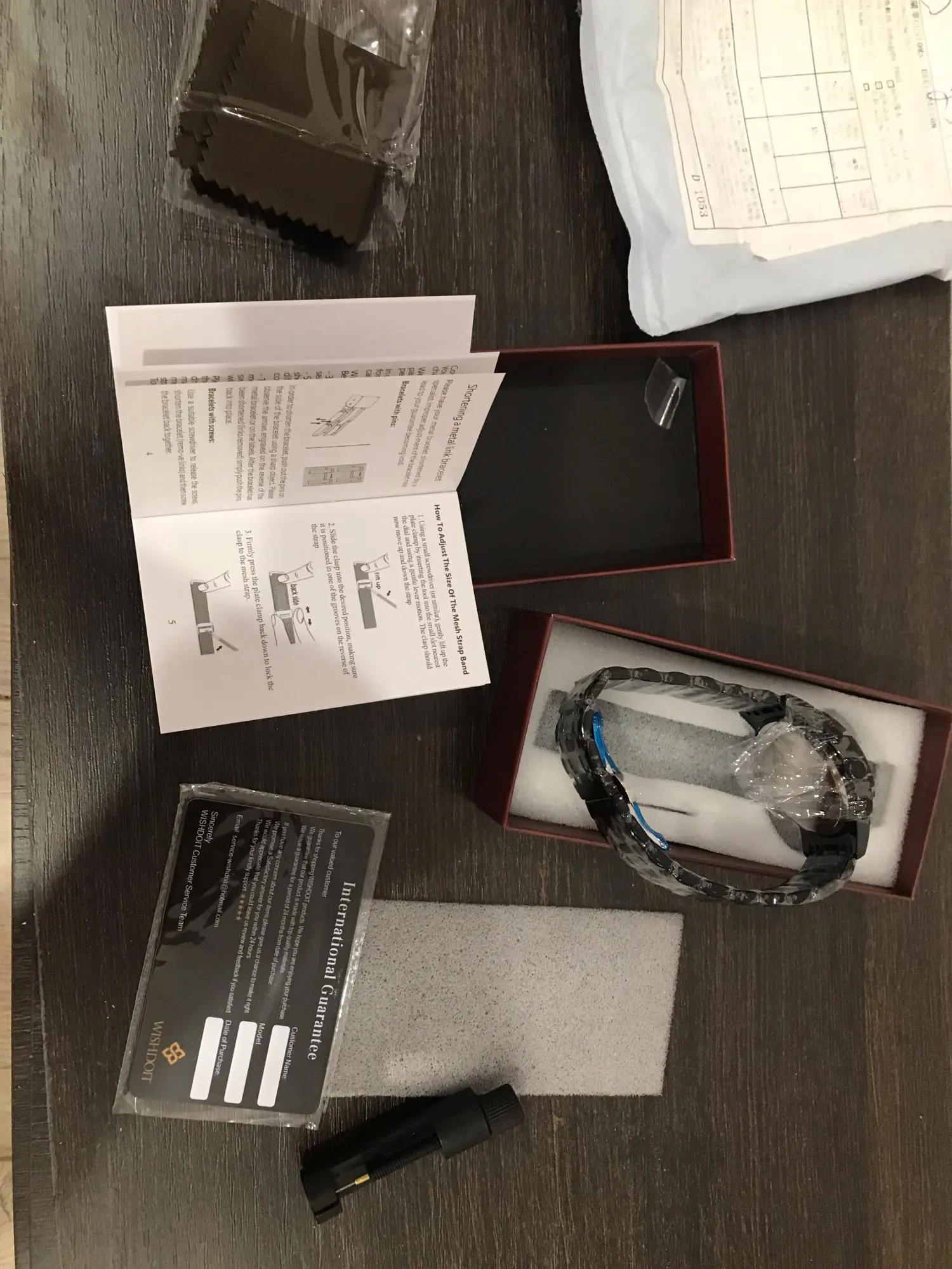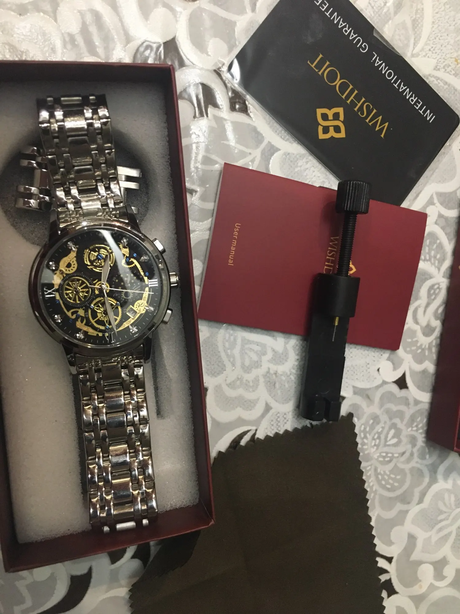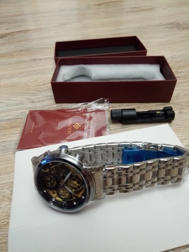 Часы топчик! Получил быстро, за такие деньги смотрятся огонь, отрегулировал под себя есть приборчик для удаления звений! Есть карточка какаета и хорошая тряпочка в комплекте. Советую товар и Продавца)))