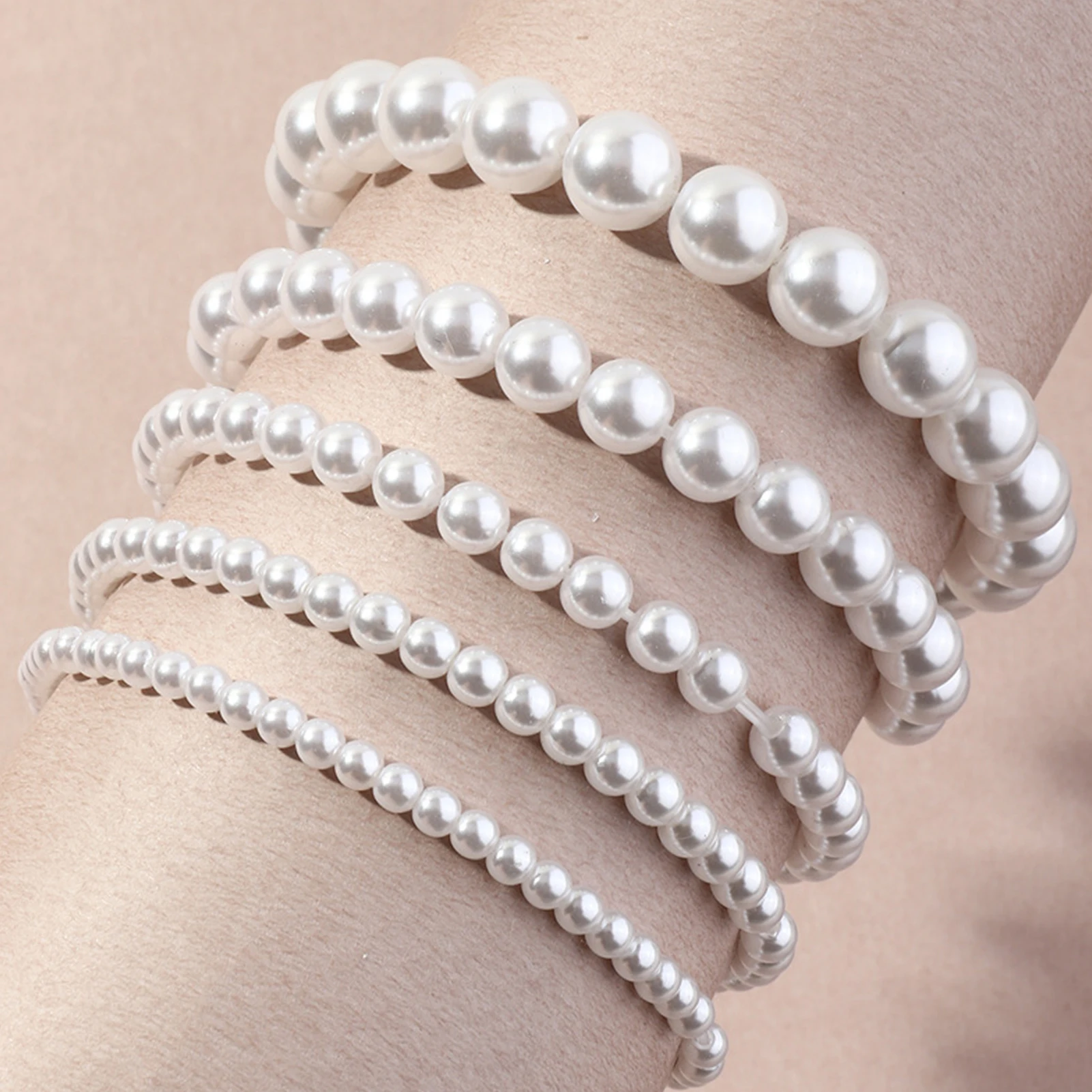 Женский многослойный браслет, растягивающийся Свадебный браслет из пластиковый искусственный жемчуг бусин, 5 шт. Описание:Браслет оформлен бусинами, что выглядит модно и новаторски.Он эластичный и удобный в носке и может сочетаться с различной одеждой.Изготовленный из пластика, браслет легкий и приятный для кожи.Длина данного браслета-16 см.Идеально подходит для свадьбы Вечерние, покупок, свиданий и так далее.Название товара: БраслетМатериал: пластикСтиль: СовременныйФорма: круглаяТип: браслетыПол: ЖенскийРазмер: 8 см x 5 см x 5 см/3,15 дюйма x 1,97 дюйма x 1,97 дюймаПримечания:Из-за разницы в освещении и настройках экрана цвет товара может сильно отличаться от изображений.Замеры сделаны вручную, поэтому возможны незначительные отклонения в размерах.Посылка входит:Браслеты 5 шт.