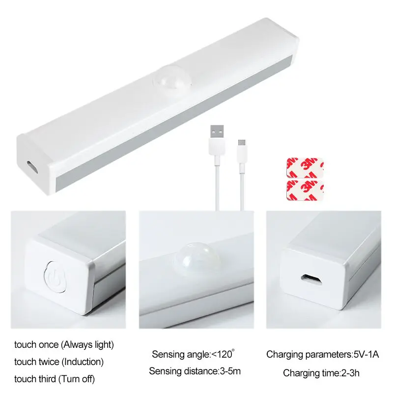Перезаряжаемый светильник для шкафа с датчиком движения, светодиодн...