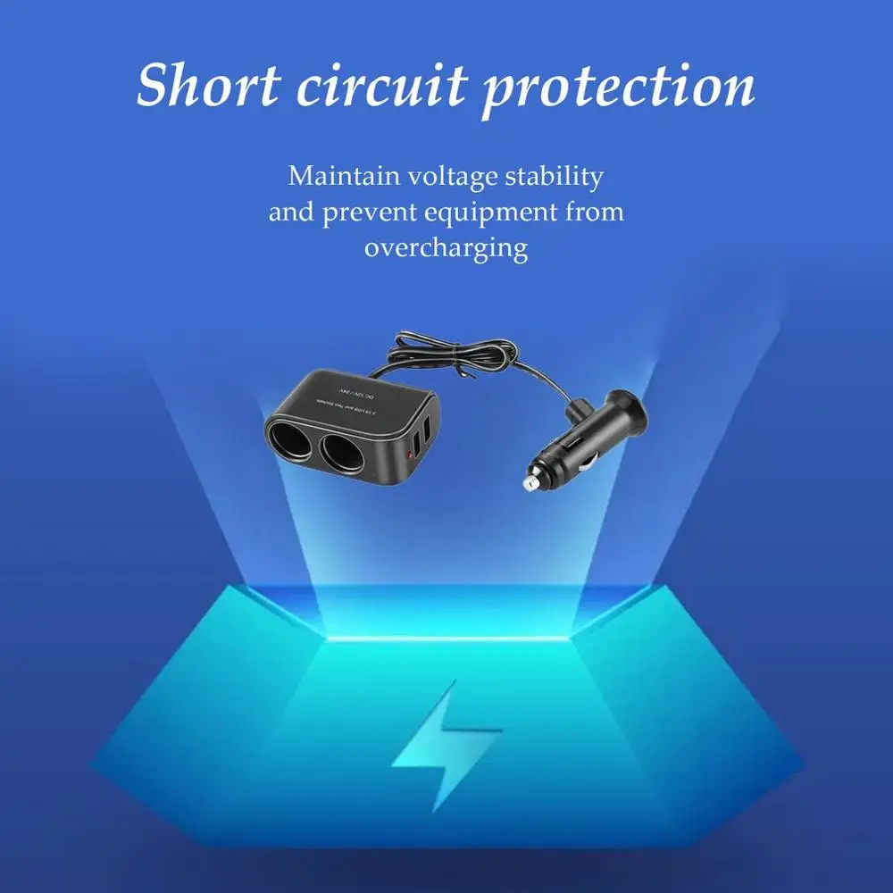 Особенности:1. Автомобильный прикуриватель высокого качества.2. Удобно заряжать устройство во время вождения.3. Защита от короткого замыкания.4. Удерживайте напряжение, чтобы предотвратить перезарядку устройств.5. Современное, экономичное и практичное устройство, которое подходит для iPod, iPad, смартфона, GPS и PDA.