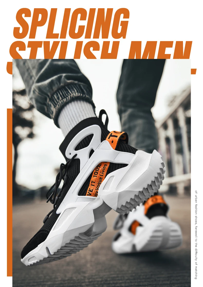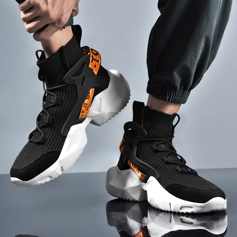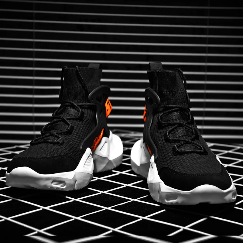 Мужские беговые кроссовки без шнуровки, ботильоны, баскетбольные теннисные кроссовки, высокие вязаные кроссовки на платформе для скейта, тренировочная спортивная обувь большого размера 46