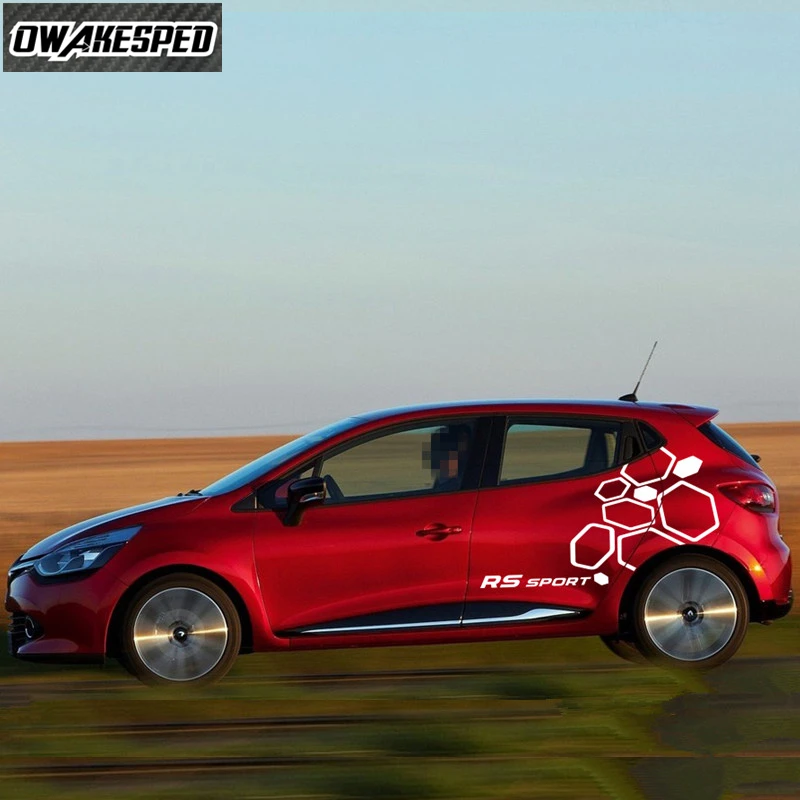 Декоративные наклейки на обе стороны автомобильной двери, для-Renault Clio Polygons, геометрические графические виниловые наклейки для кузова, гоночные спортивные полосы