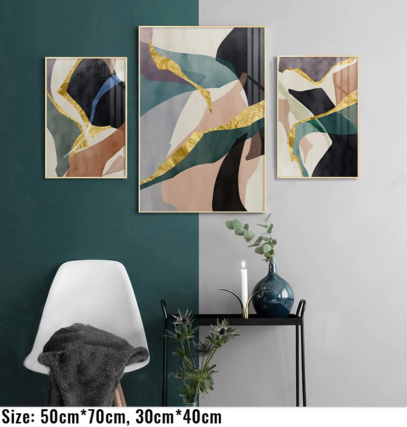 Современная Абстрактная живопись с неоднородным рисунком Золотой Фольга плакат Холст Картина Wall Art скандинавский принт скандинавский Декор Гостиная Спальня