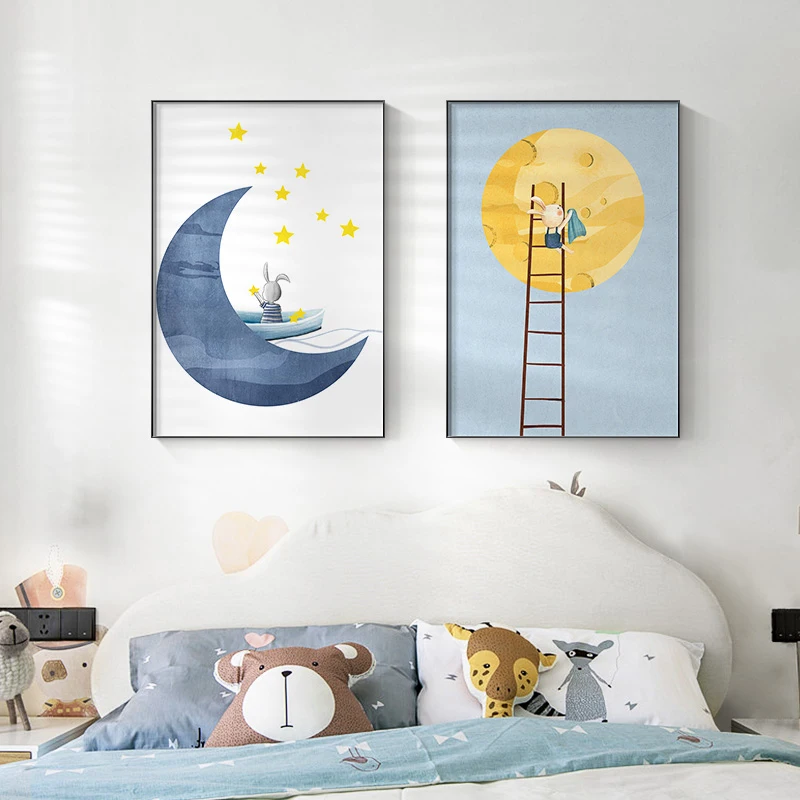 Милый жираф кролик луна воздушный шар мотоцикл настенная живопись х...