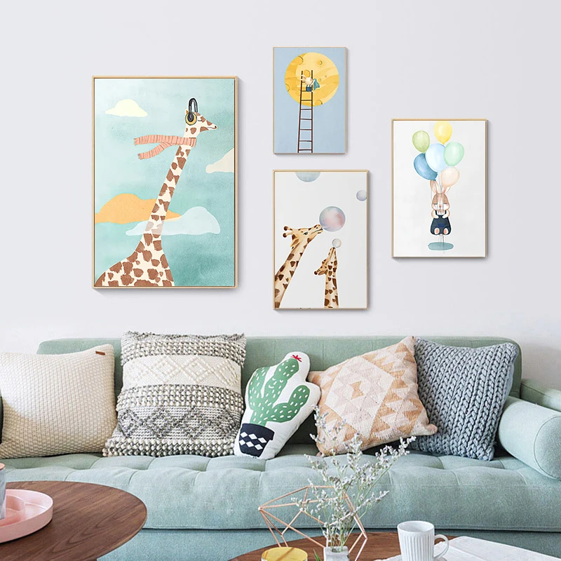 Постер на холсте с изображением жирафа, пузыря, кролика, воздушного...