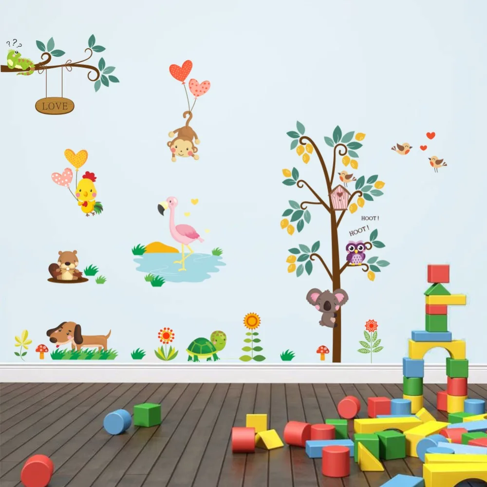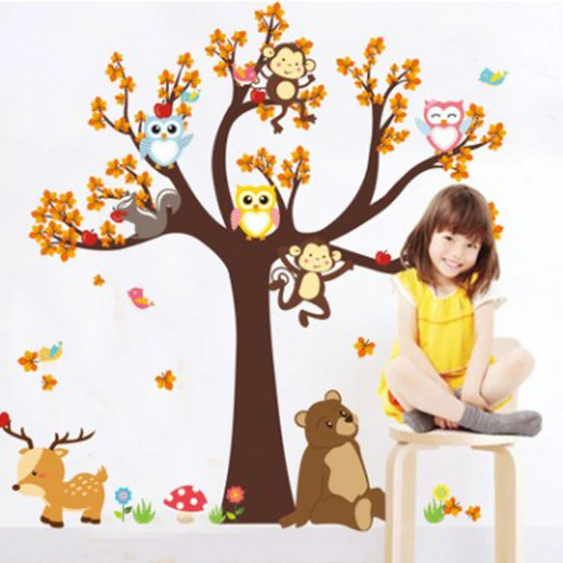 Лес Дикий Совы обезьяны Черепаха Дерево наклейки на стену для детск...