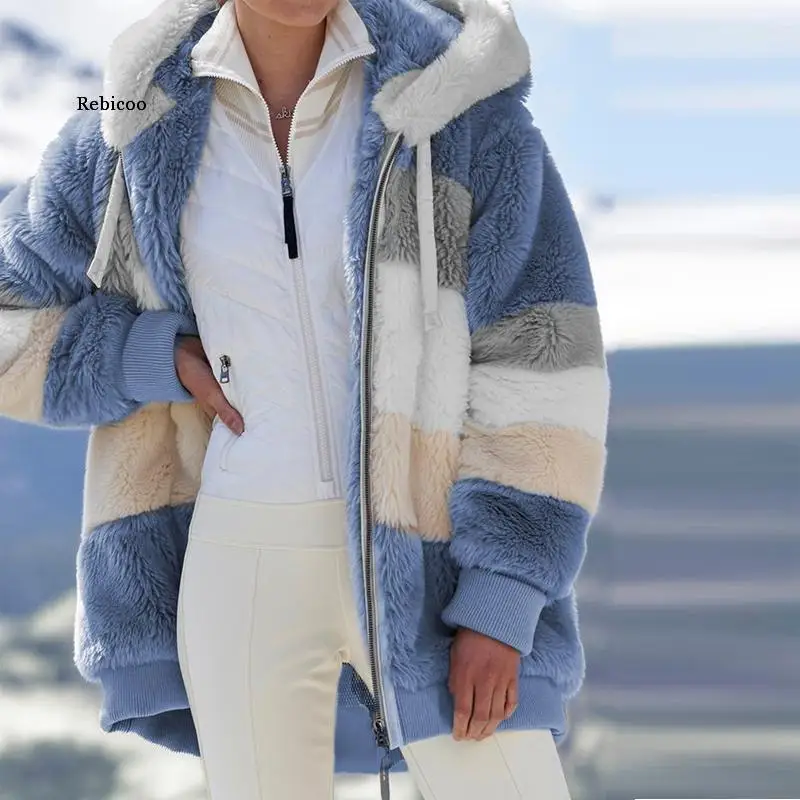 Зимнее женское плюшевое пальто, модная куртка с капюшоном на молнии...