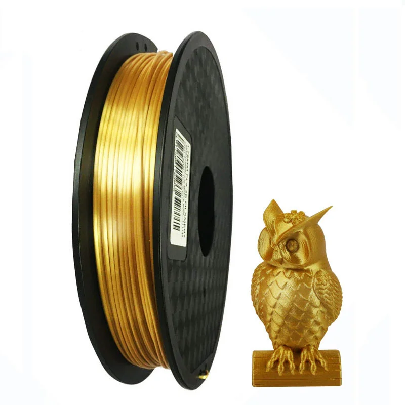 Шелковая 3D печать PLA нить имеет следующие характеристики:* 1, шелк, как шелковистая блестящая поверхность с шелковым блеском, придавая гладкий, жемчужный и уникальный вид. Полировка не требуется, печать с высокой деталью приводит к красивой отделки.* 2, высокая производительность-хорошая форма, отсутствие пузырьков, отсутствие помех, отсутствие деформации. Высокая прочность, хорошая прочность, Отличная плавность, плавное питание, стабильная выходная мощность.* 3, плотность шелковой нити PLA мала, при печати большего объема модельная зажигалка и красивые, высококачественные материалы, экологически чистые с хорошей производительностью, нетоксичные.* 4, шелковая нить PLA может быть обработана при широкой температуре, более низкой температуре плавления, как правило, имеет более четкие детали без риска растрескивания или деформации, печатные предметы будут иметь более глянцевый вид.* 5, выделите шелковую нить pla, без пузырьков, (критический фактор качества нити), без рисунка.* 6, шелковая нить PLA, которая применяется для различных брендов 3D-принтеров, EasyThreed, Makerbot, UP plus, Mendel, Prusa, серий и т. д. Высокая совместимость, идеально подходит для большинства 3D-принтеров!Характеристики:Название: Выделите шелк 3D-принтеры PLA нити 1,75 ммМатериал: PLAЦвет: как на изображенииТемпература печати: 190 C-240 C (374 F-446 F)Рекомендуемая скорость печати: 30 - 60 мм/сек.Размеры: 1,75 мм +/-0,05 ммТемпература подогреваемой кровати: 0-50 °CЦвет: из-за разницы мониторов и эффекта освещения изображение может не отражать 100% фактический цвет изделия. Спасибо за понимание.Что в посылка:Шелковая нить PLA для 3D-принтера