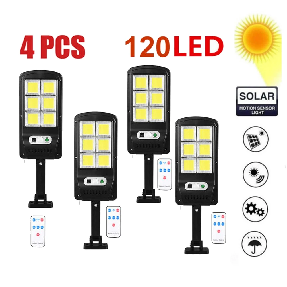 Большой размер 120 COB светодиодный светильник на солнечных батареях, светильник на солнечных батареях, садовый светильник на солнечных батареях, настенный светильник с датчиком движения PIR, водонепроницаемый инфракрасный датчик, светильник, 3 режима работы, вращающийся кронштейн с пультом дистанционного управления, аккумулятор 2200MHA