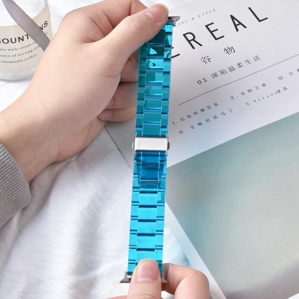 Ремешок полимерный для apple Watch series 7 6 5 4 band 42 мм 38 мм, прозрачный стальной браслет correa для iwatch 7 6 5 4 3 2 44 мм 40 мм 41 мм 45 мм