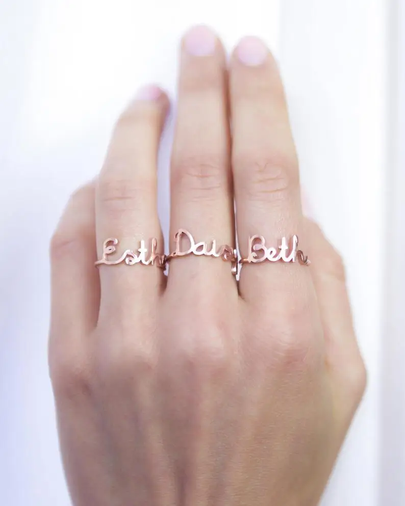 Изысканное кольцо с именем ♥ самые уникальные ювелирные изделия, которые вы можете найти, идеальный подарок для вас и вашего любимого ♥ N A M E ● R I N G • Материал: высококачественная сталь • Размеры: в зависимости от выбора шрифта, размеры высоты колеблются от 3 мм до 4 мм. • Цвет: серебристый ● Золотой ● розовое золото • Вся наша работа сделана вручную с любовью и заботой в нашей мастерской ♥