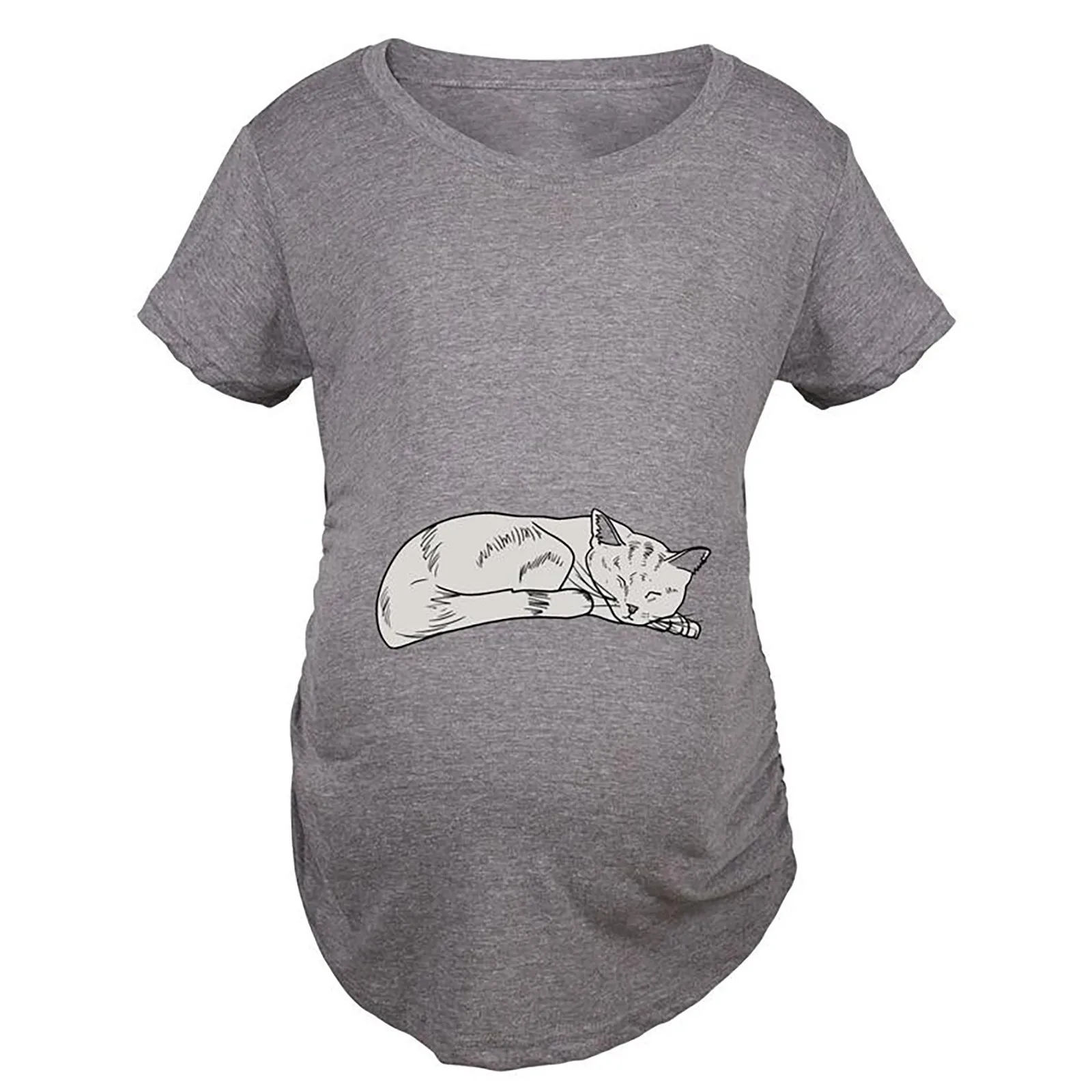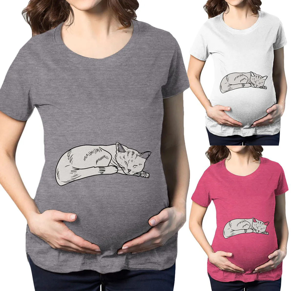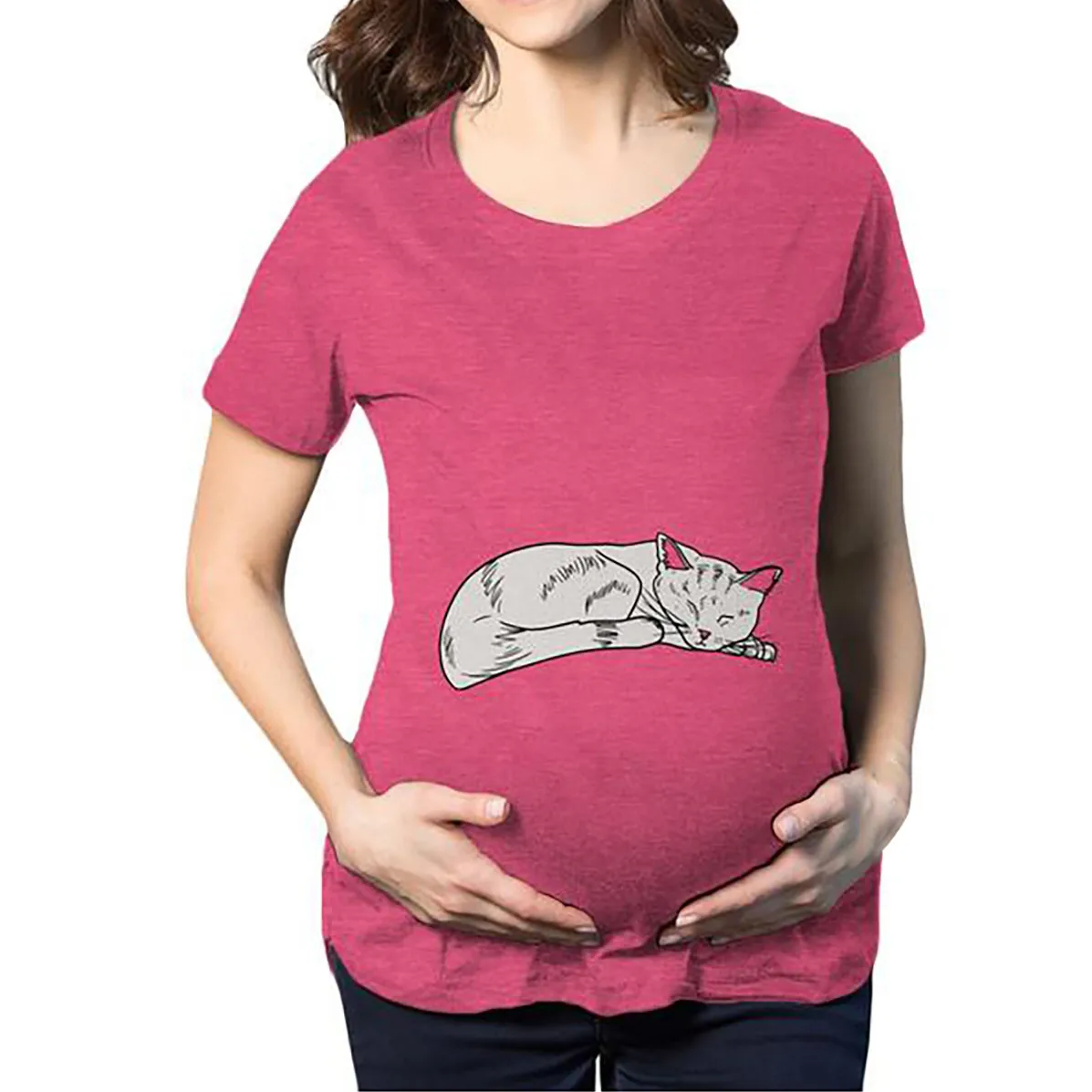 Мультяшные летние футболки 2021, женские футболки, тонкие Забавные топы для беременных с круглым вырезом, футболки для беременных, оптовая продажа