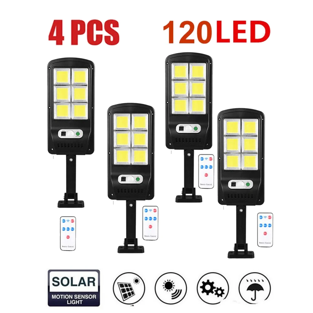 Большой светодиодный светильник 120 COB на солнечной батарее, уличный светильник на солнечной батарее для садовой лужайки, настенный светильник с пассивным инфракрасным датчиком движения, водонепроницаемый светильник с 3 режимами работы, вращающийся кронштейн с пультом дистанционного управления, батарея 2200MHA