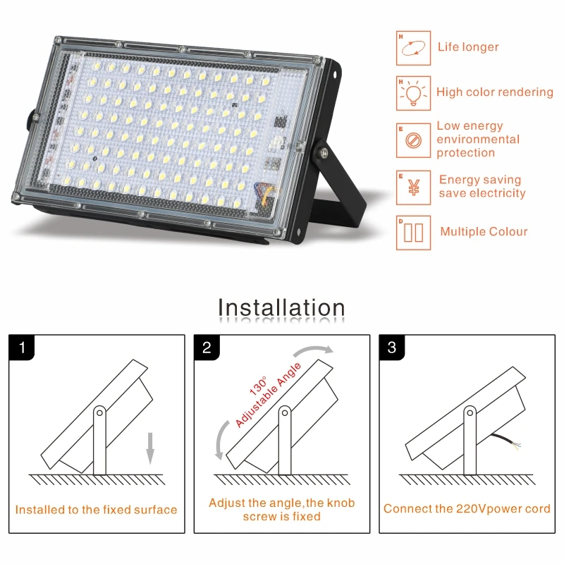 Факты:Наш продукт изготовлен из высококачественных чипов. Высококачественный АБС абажур с высоким коэффициентом пропускания. Наш светодиодный светильник эквивалентен 300 Вт галогенной лампе. Прожектор также экономит 80% вашей энергии по сравнению с традиционными галогенными лампами. Осветите вашу атмосферу нашим светодиодный прожектором!