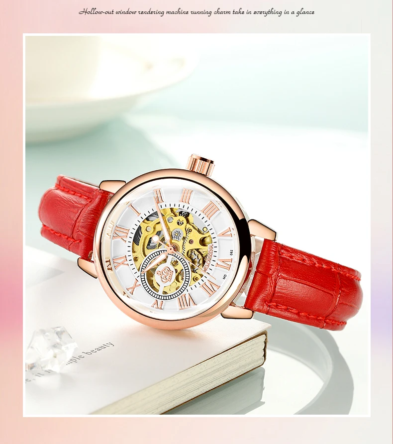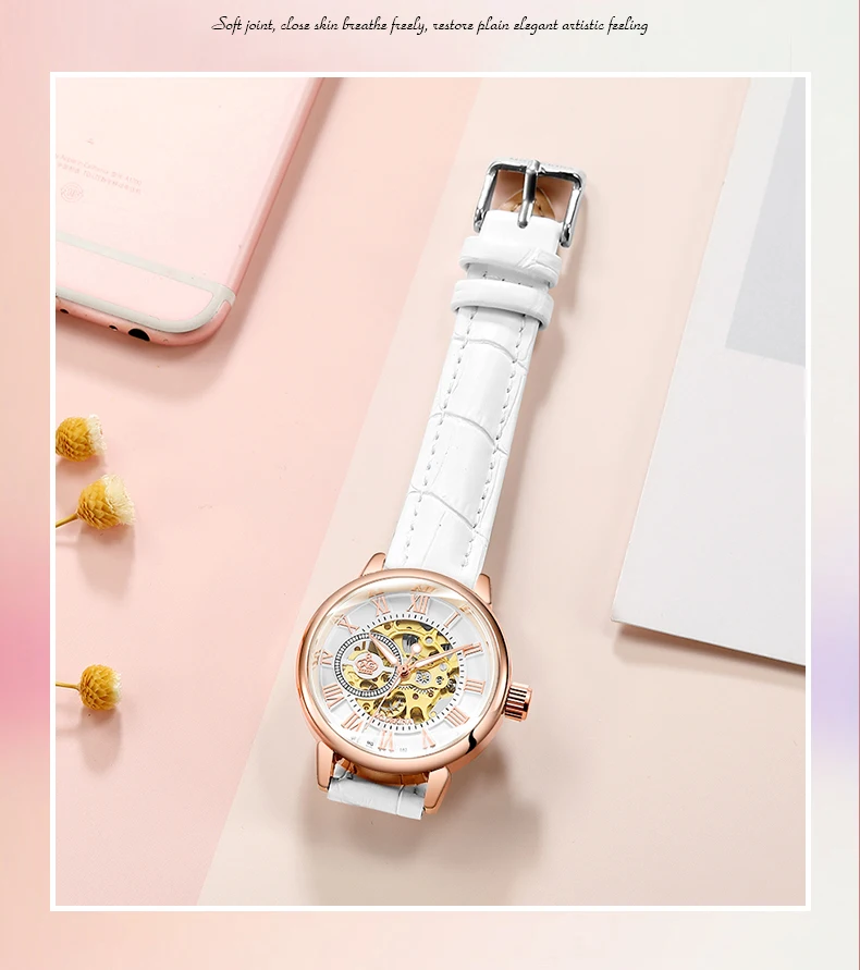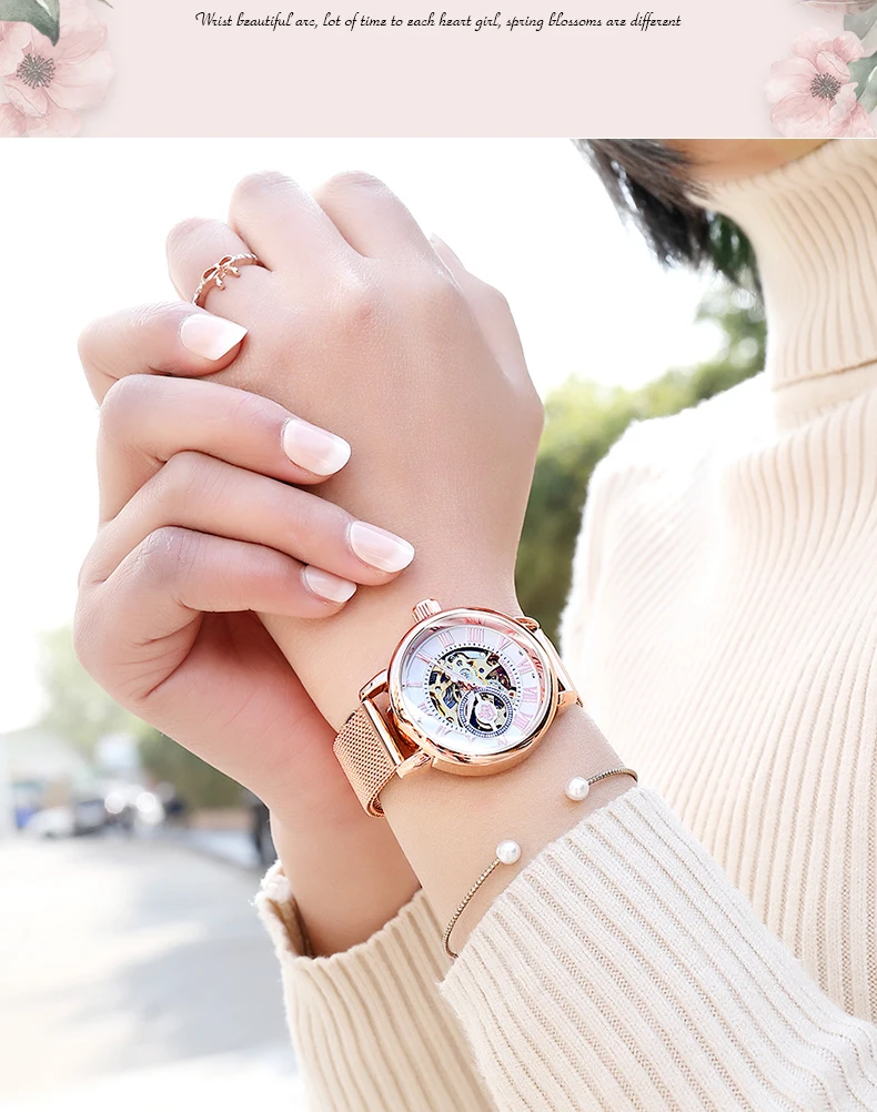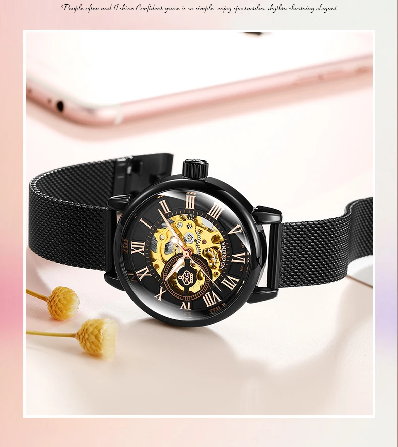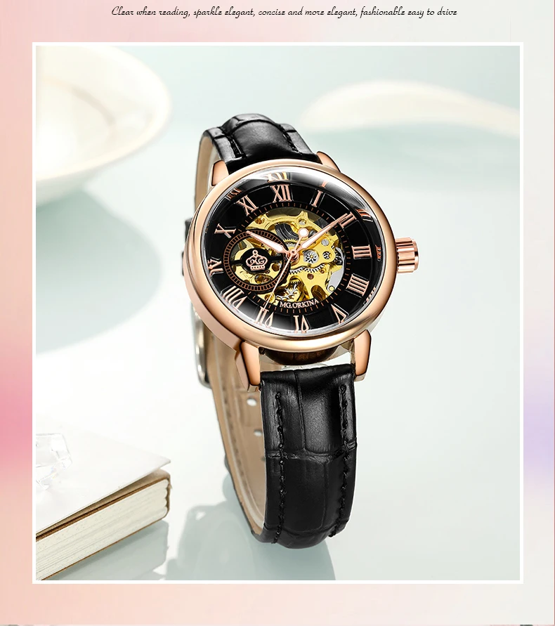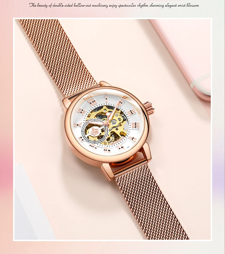 Часы женские ORKINA механические, розовое золото, автоматические, 2020