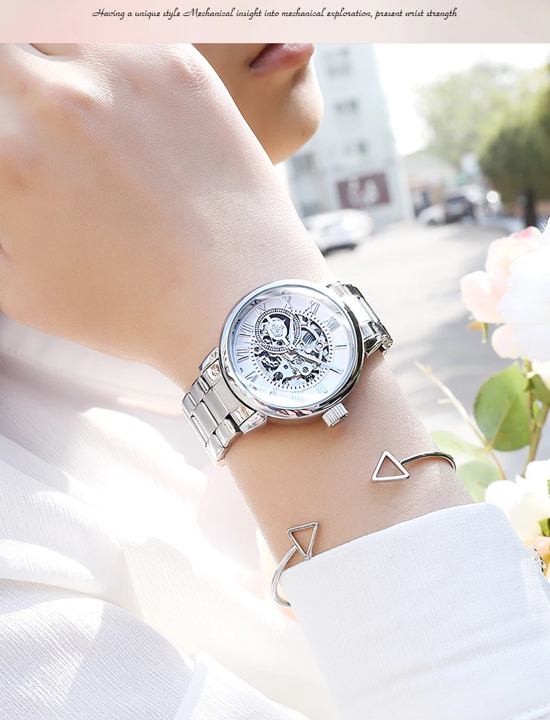 Часы-скелетоны женские механические, Модные Роскошные водонепроницаемые деловые Автоматические наручные, из нержавеющей стали