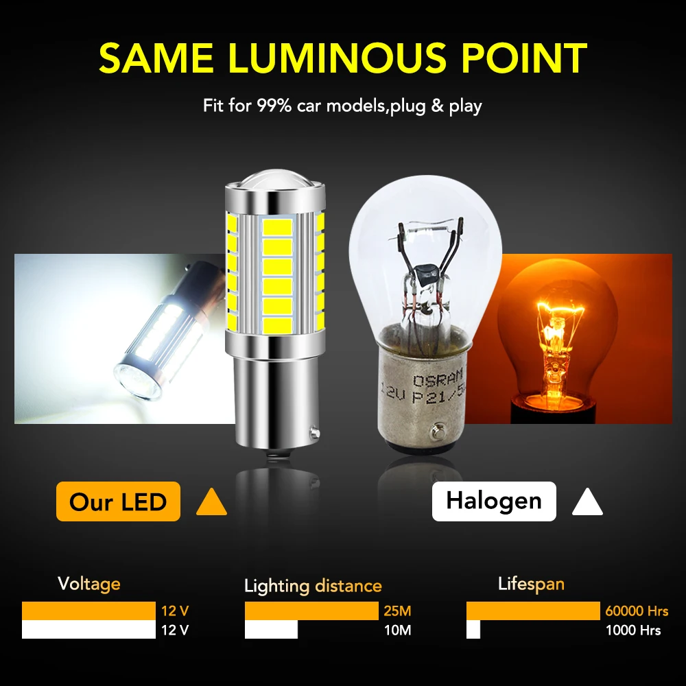 2 шт., Автомобильные светодиодные лампы 1156 BA15S P21W для Toyota ...