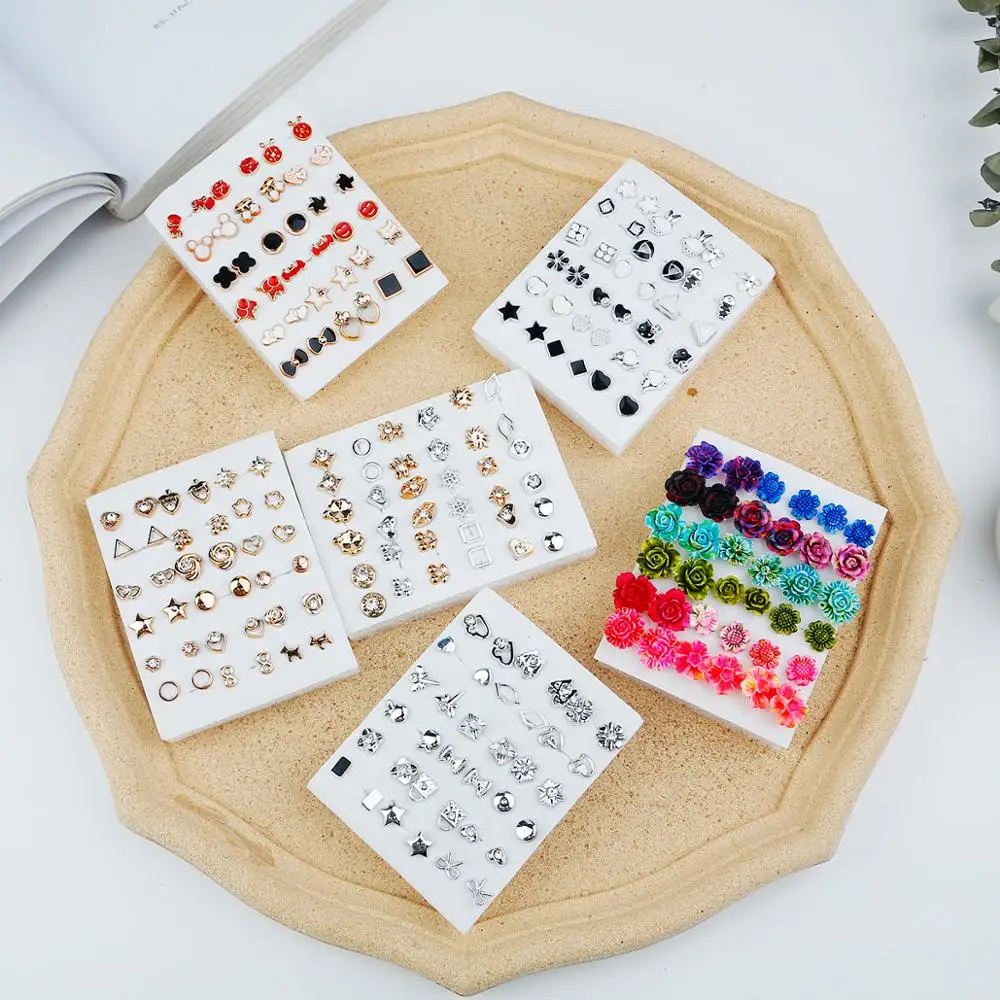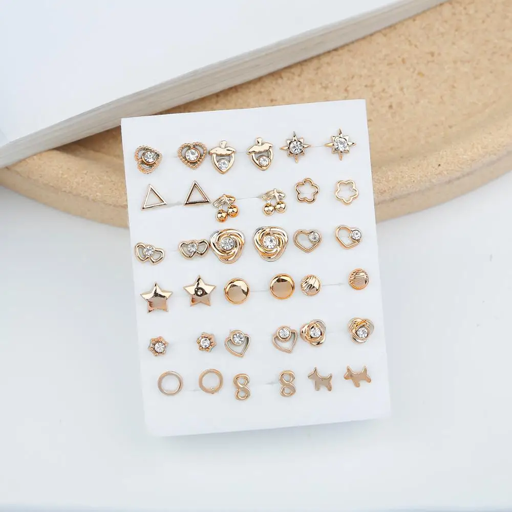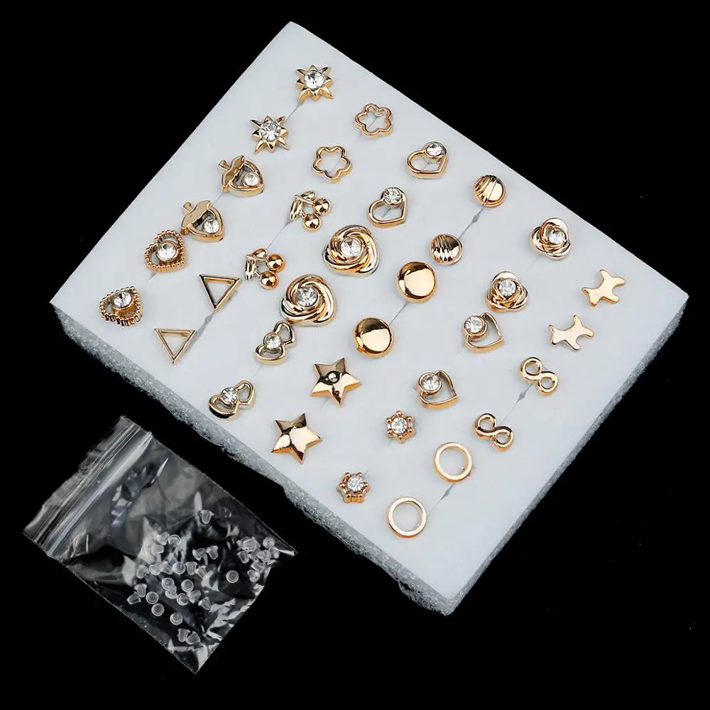 18 пар в различных Стиль цвета: золотистый, серебристый Цвет стразы кристалл серьги-гвоздики с цветочным украшением из Комплект сережек для женщин и девочек с маленькими пластиковыми Серьги Brincos, можно носить