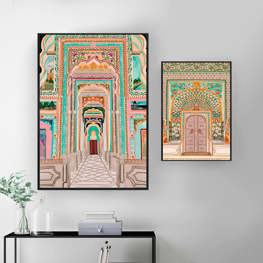 Акварель, марокканская дверь, винтажный постер, коридор, архитектура, художественные картины, печать, гостиная, холст, живопись, картина, домашний декор