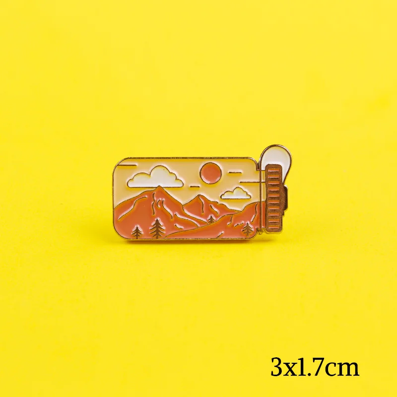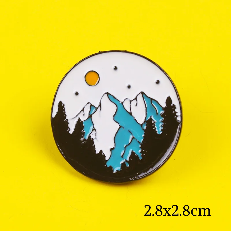 Брошь для одежды, с эмалью, с изображением горы и океана, нашивки н...