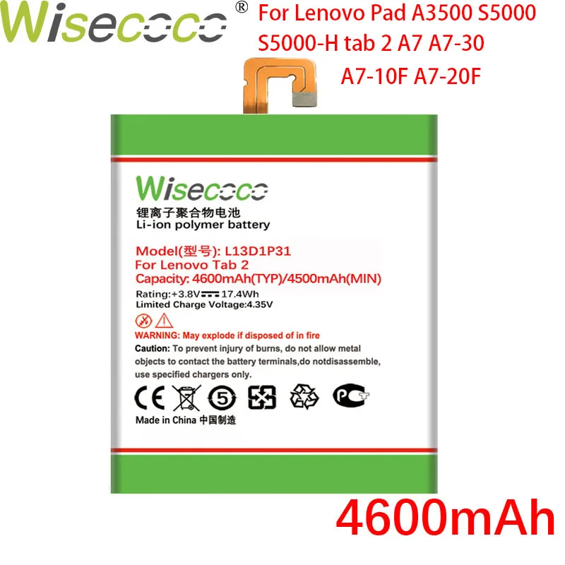 Аккумулятор Wisecoco для Lenovo LePad S5000 S5000H Pad A3500 Tablet PC L13D1P31 tab 2