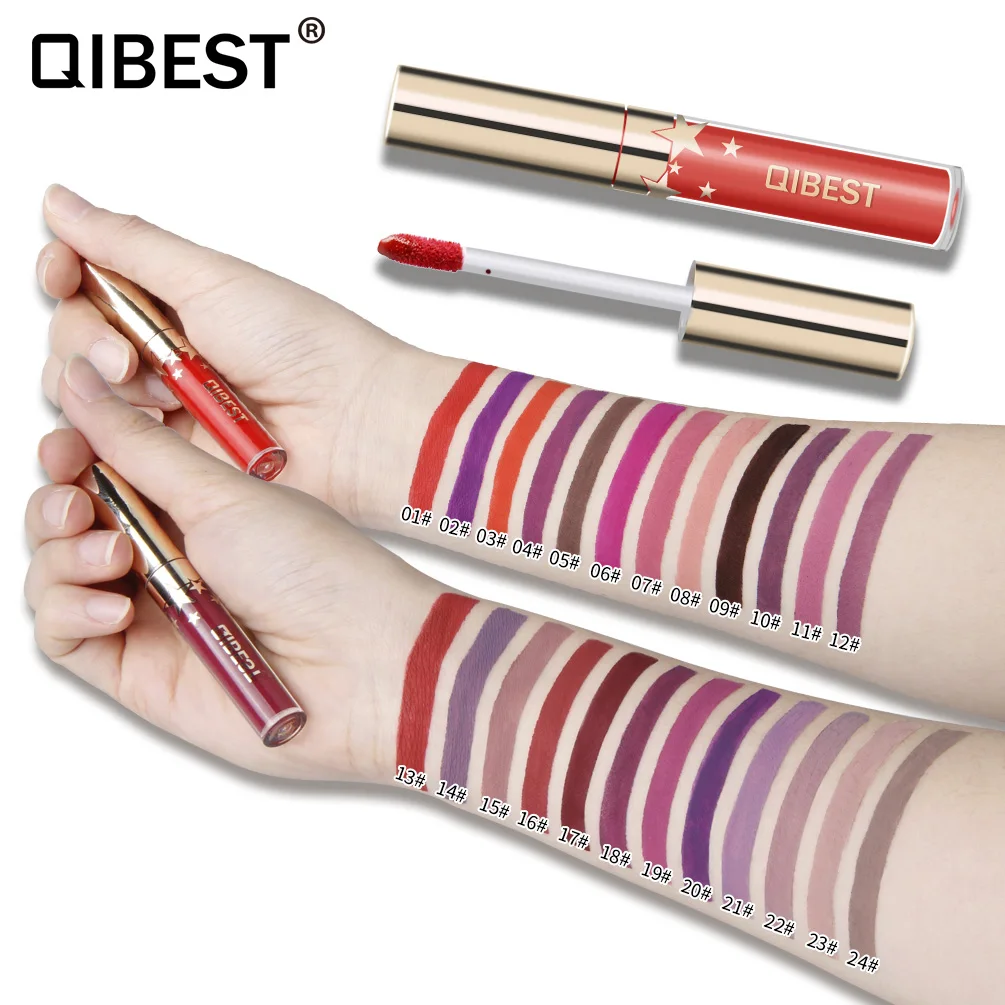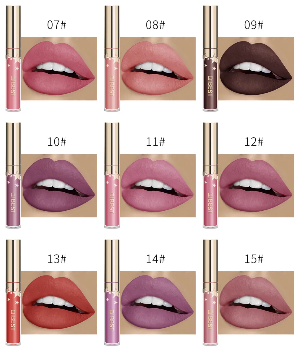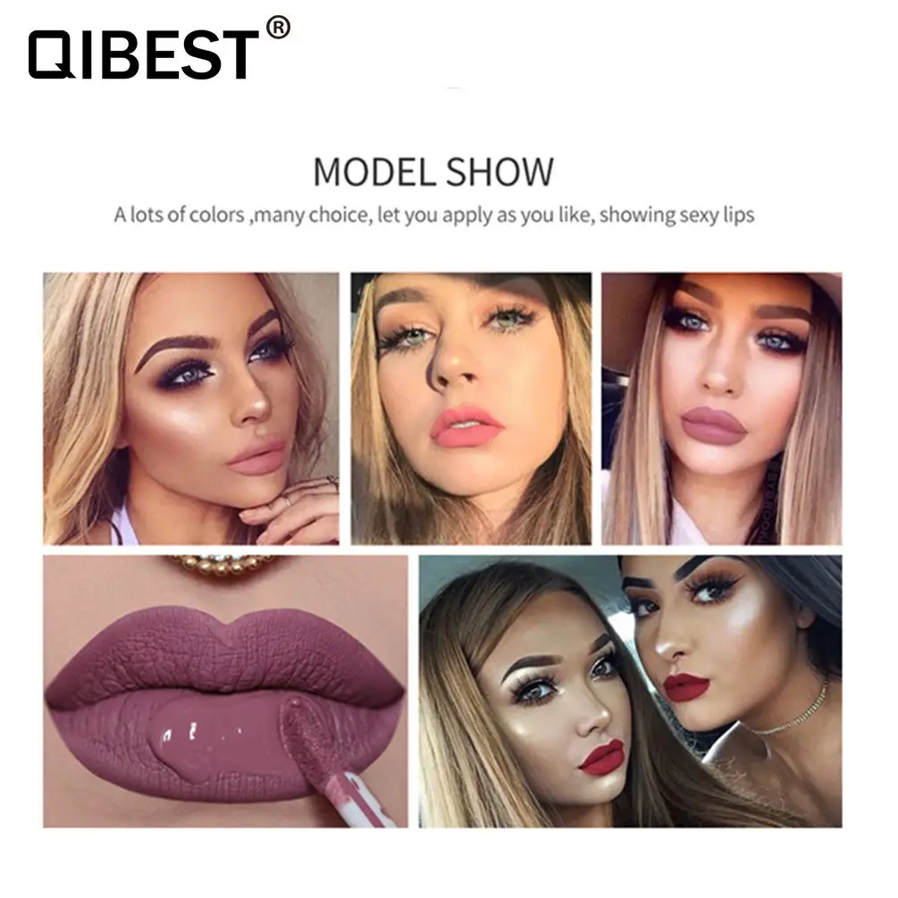 Матовая жидкая помада Qibest, портативный карманный макияж, блеск для губ с высоким пигментом, Водостойкий тинт для губ, стойкий сексуальный блеск для губ
